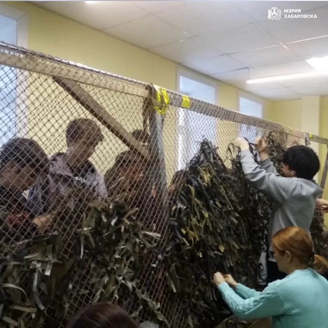 Студенты добровольческих отрядов «Щит», «Доброе сердце» и «Креативная студия» КГБ ПОУ «Хабаровский технический колледж» приняли участие в важной и нужной работе — плетении маскировочных сетей для военнослужащих, участвующих в специальной военной операции.
