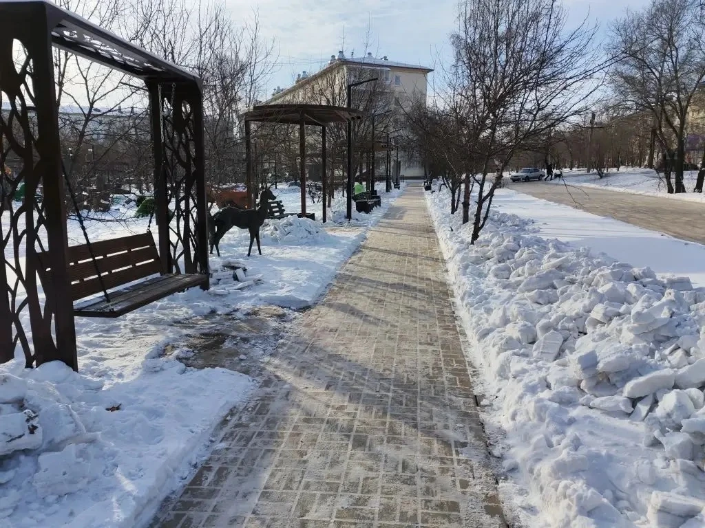 🧹 По запросу от граждан очищена от снега и наледи лестница по адресу Бульвар Амурский, 63, а также новый сквер на улице Руднева. Теперь передвижение на данных участках стало удобным и безопасным.