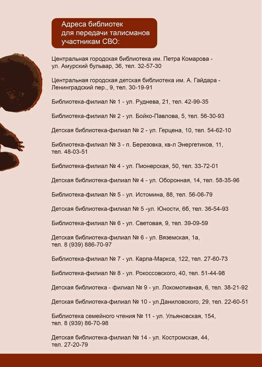До 13 февраля передайте свои талисманы добра в любой удобный для вас центр работы с населением или библиотеку города. Адреса и телефоны для связи – в карточках выше☝