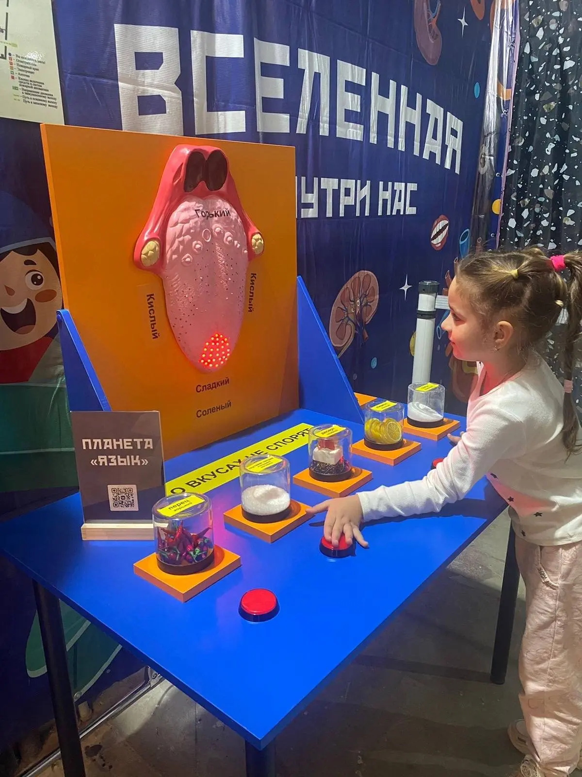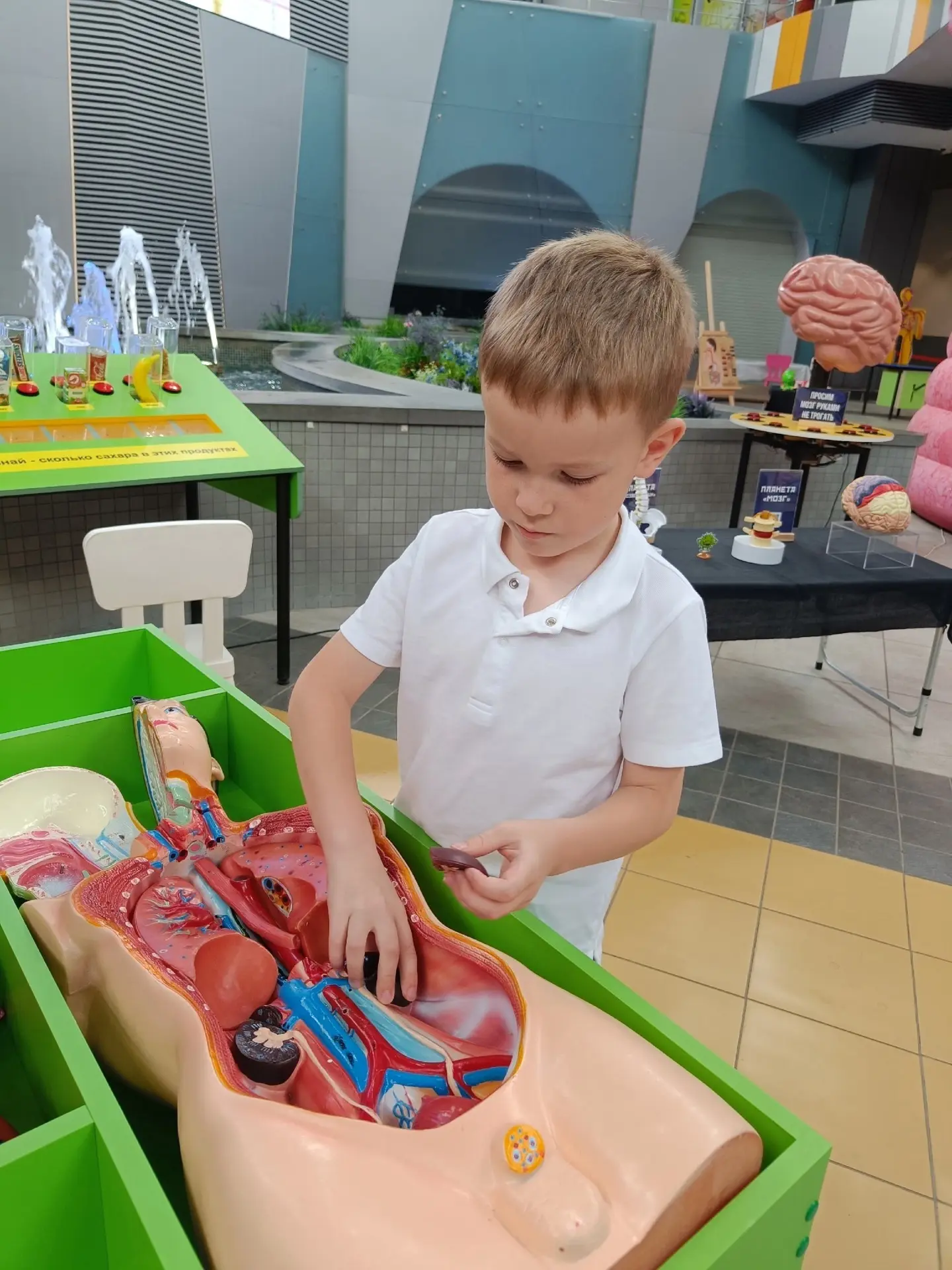 Здесь вы сможете всё потрогать, нажать на интерактивные элементы и наглядно увидеть, как работают наши вкусовые рецепторы, как переваривается пища, что происходит в голове, как кровь бежит по венам и многое другое.