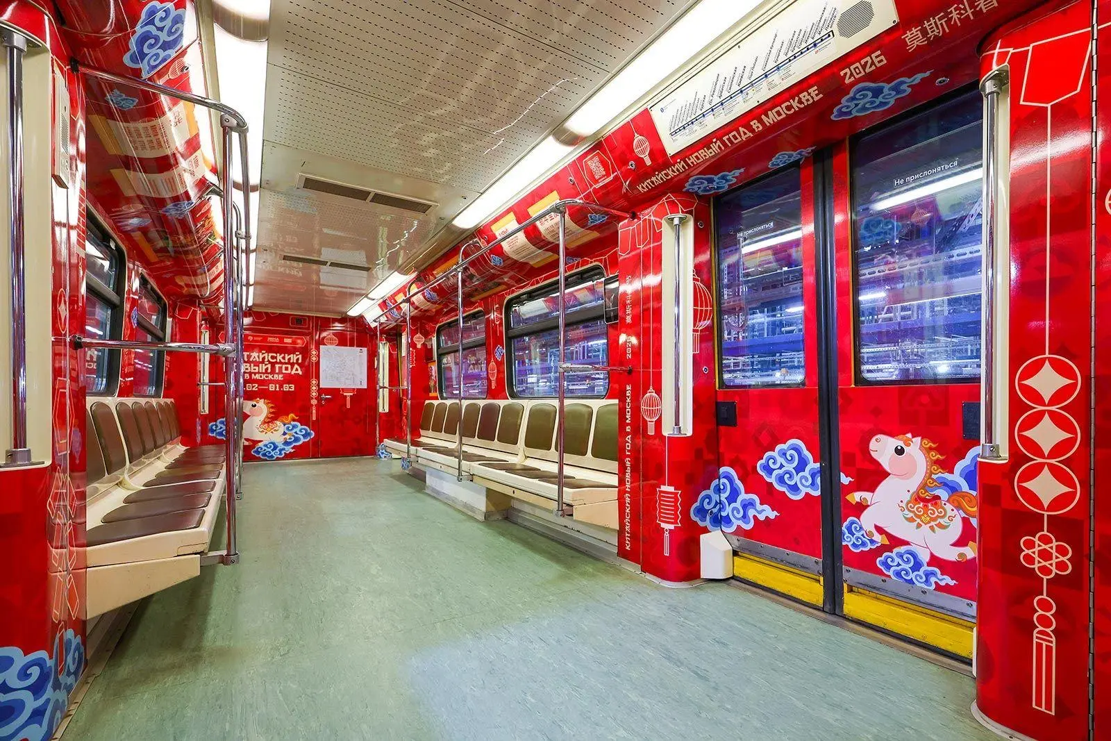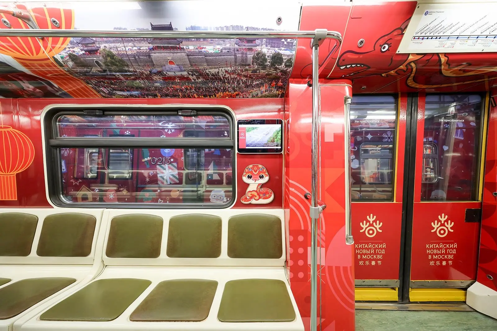 В вагонах разместили стихотворения о празднике на китайском языке, начиная с 600-х годов нашей эры, и их переводы на русский язык, фотографии празднования китайского Нового года в Москве прошлых лет и схему метро на китайском языке в первом и последнем вагонах.