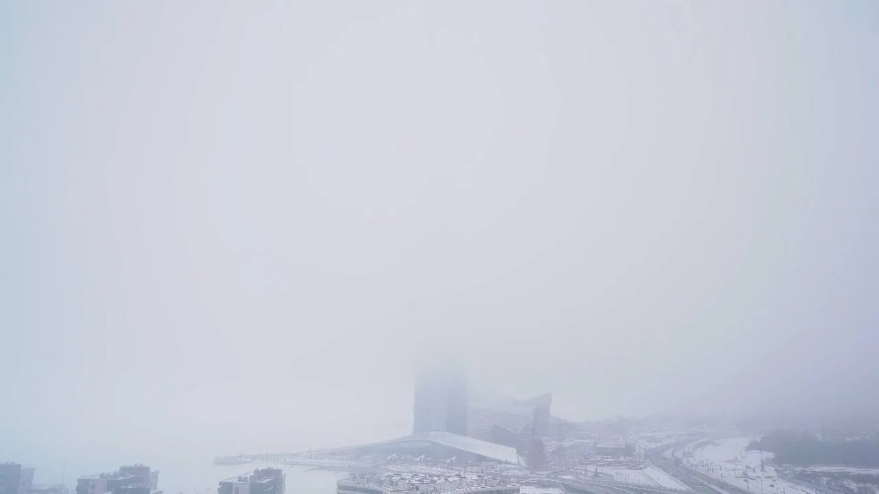 Густой туман накрыл Петербург и почти полностью спрятал «Лахта Центр».