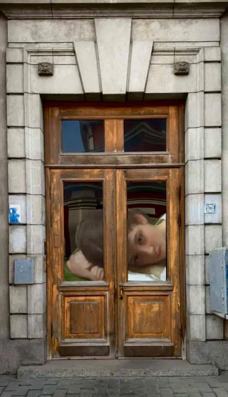 В Петербурге художница оформила стеклянные двери дома своими работами