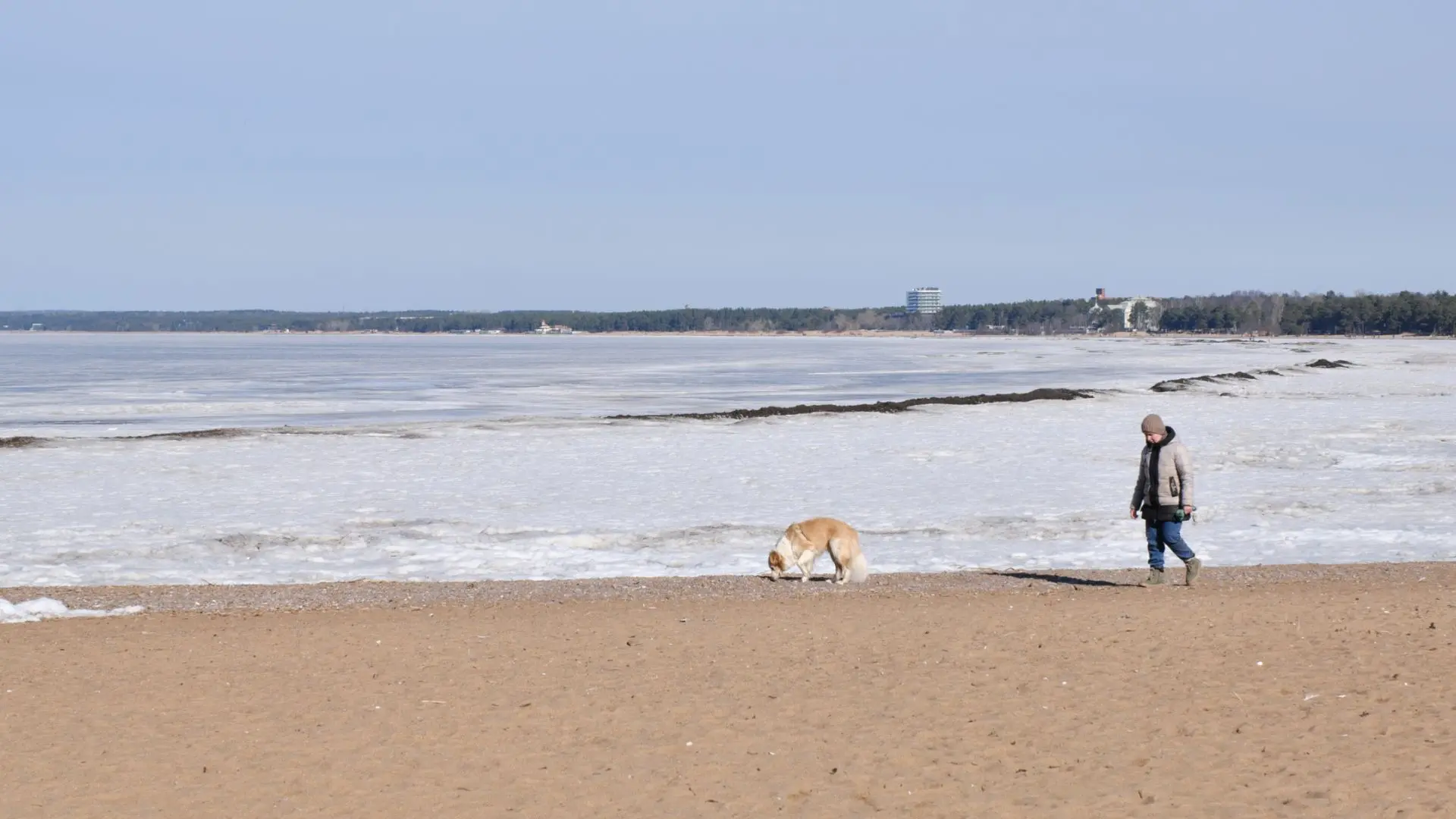 Питерская весна это время контрастов. Яркое солнце, теплая погода, чистый пляж, замерзший залив. И собаки - интеллигентные питерские собаки, наслаждающиеся счастливыми прогулками по свежеоттаявшему песку. Фото А.Смирнов