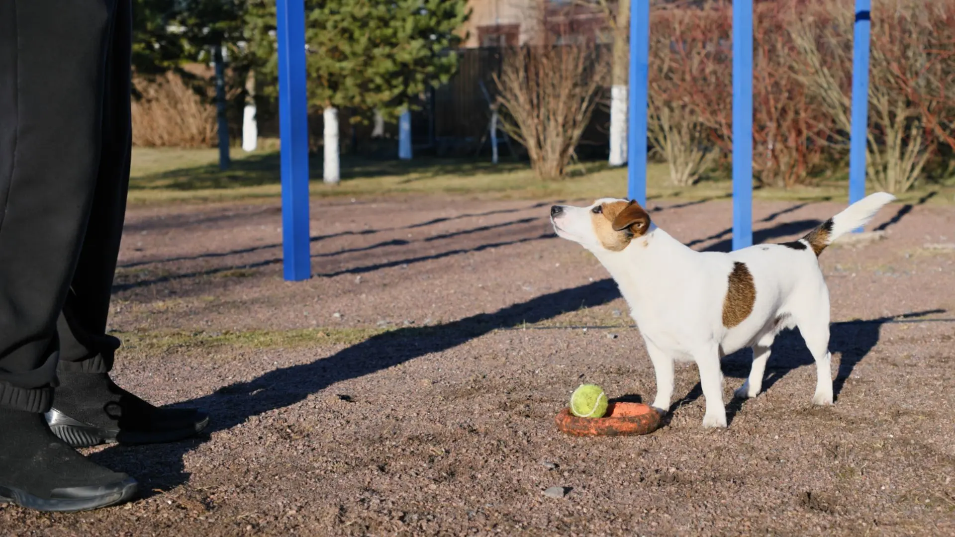 Мы называем это «собачий кёрлинг». Суть игры в том, чтобы уговорить Джека бросить мячик. Но не просто бросить - нужно уговорить его бросить в центр пуллера. Игра идет до пяти очков, а если Джек работает хорошо, то до десяти. Как правило, каждому игроку нужно сделать порядка двух десятков попыток. Та еще работёнка... Фото А. Смирнов