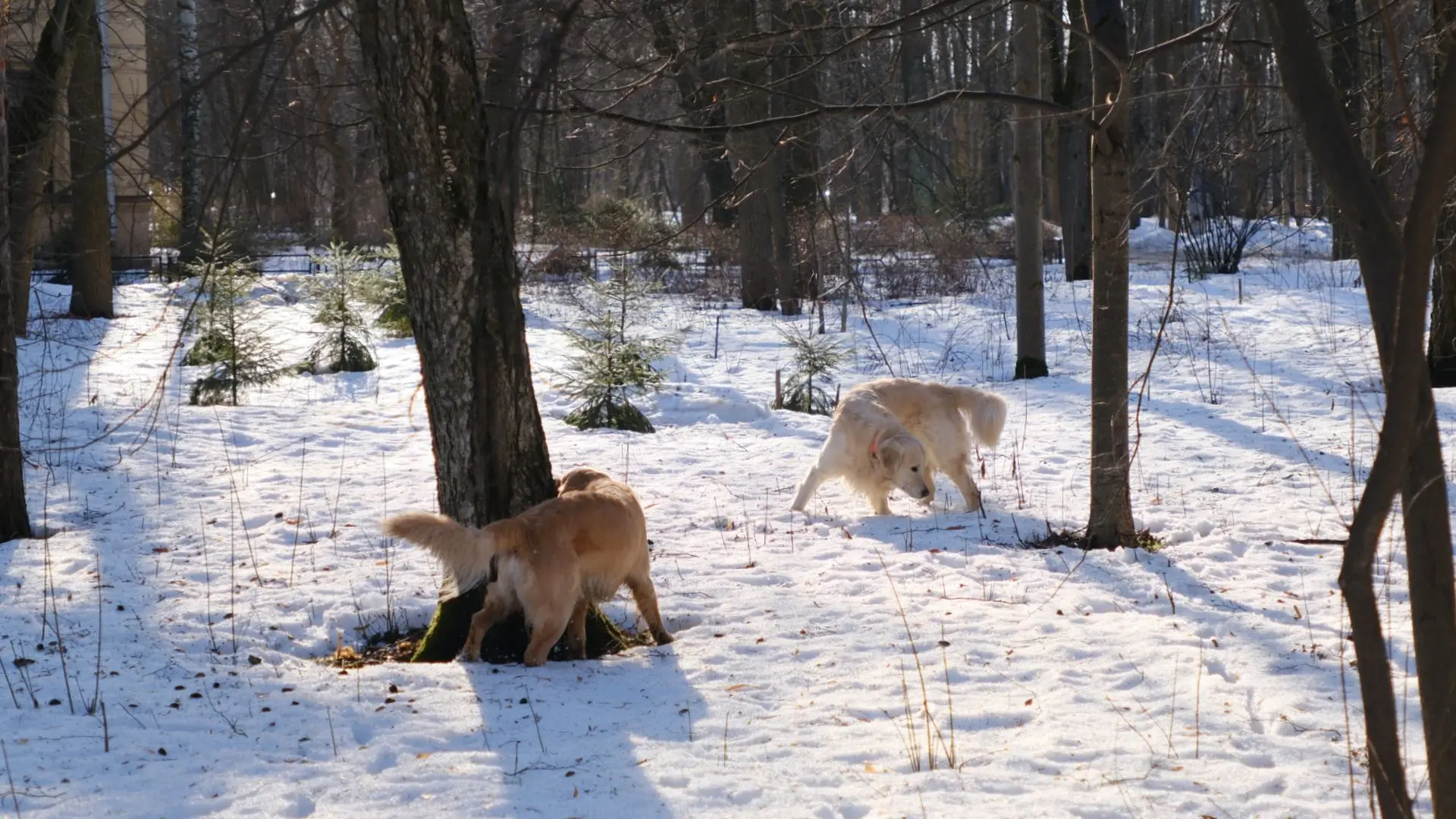 Такие вот дела весенние: мои любимые мальчишки вовсю мышкуют. Им ни до чего нет дела - сейчас в парке показались из-под снега тысячи мышиных ходов, и у ребят начался сезон охоты. На фото: голдены Тони и Луи. Фото А.Смирнов