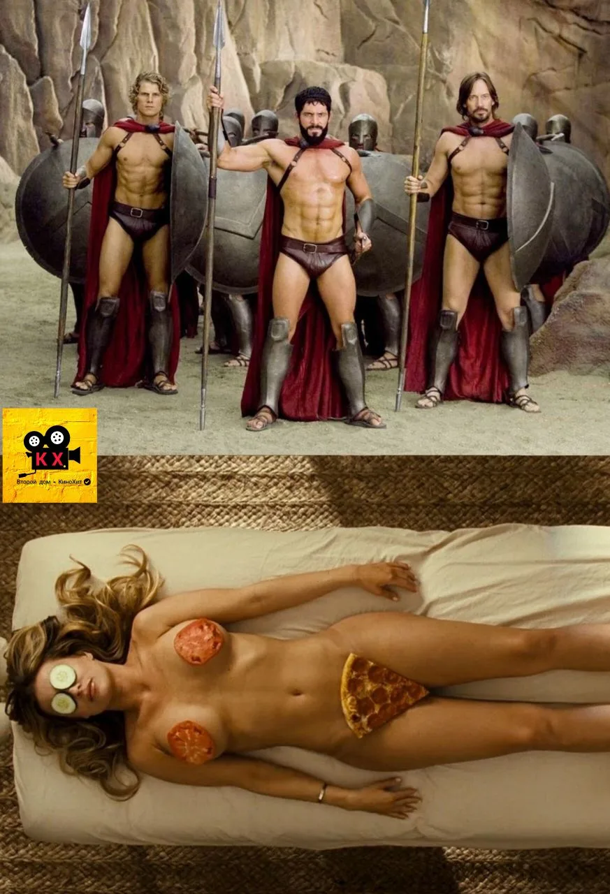 ➖Героический и безоружный Леонидас с 13 спартанцами-головорезами встаёт на защиту родины от персов, в рядах которых имеются Призрачный Гонщик, Рокки Бальбоа, Трансформеры и даже Пэрис Хилтон.