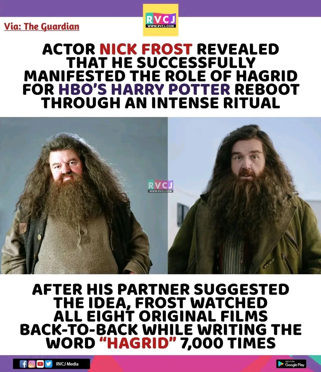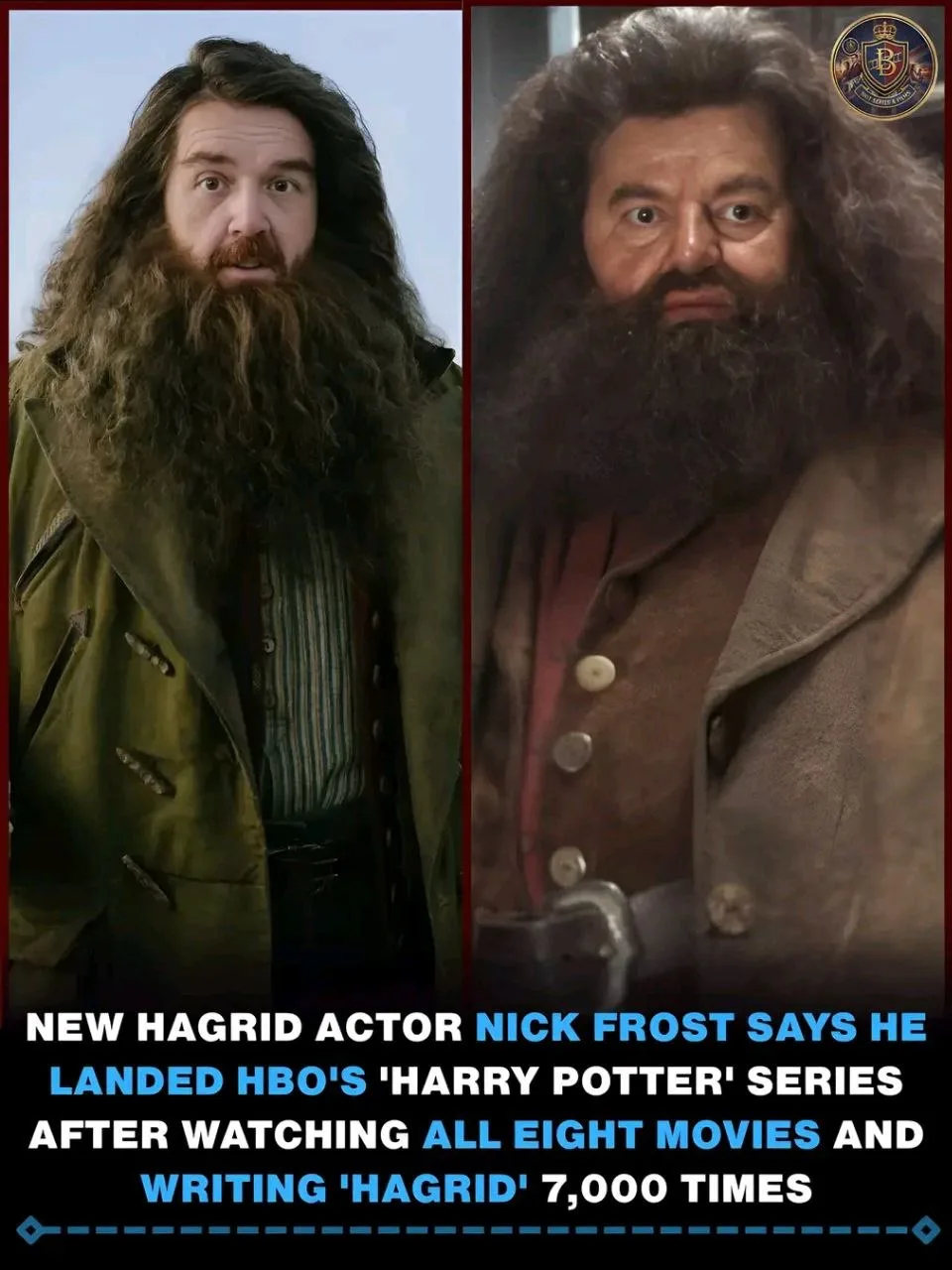 Фрост: "Я посмотрел все фильмы про Гарри Поттера. Каждый год на Рождество мы смотрим их всей семьёй. Мы начинаем 20 декабря и заканчиваем через 1.5 недели. До того как меня назначили на роль Хагрида - коллега предложил попробовать представить его в своей голове. Так что на прошлое Рождество я посмотрел все фильмы подряд. При этом я написал слово "Хагрид" около 7000 раз"