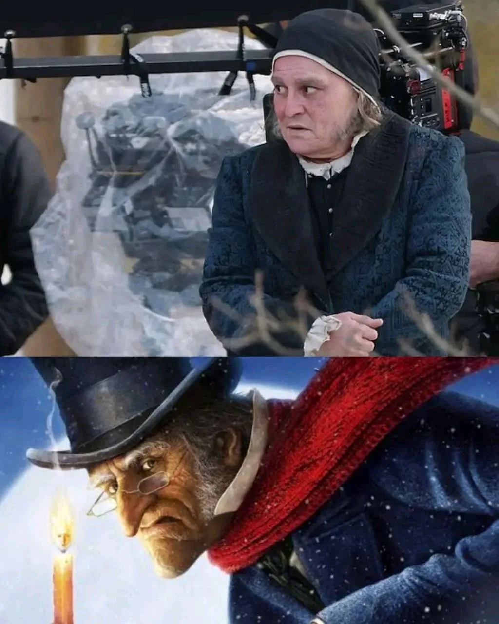 Джонни Депп в образе Скруджа на съемках фильма Эбенезер: Рождественская история (Ebenezer: A Christmas Carol).
