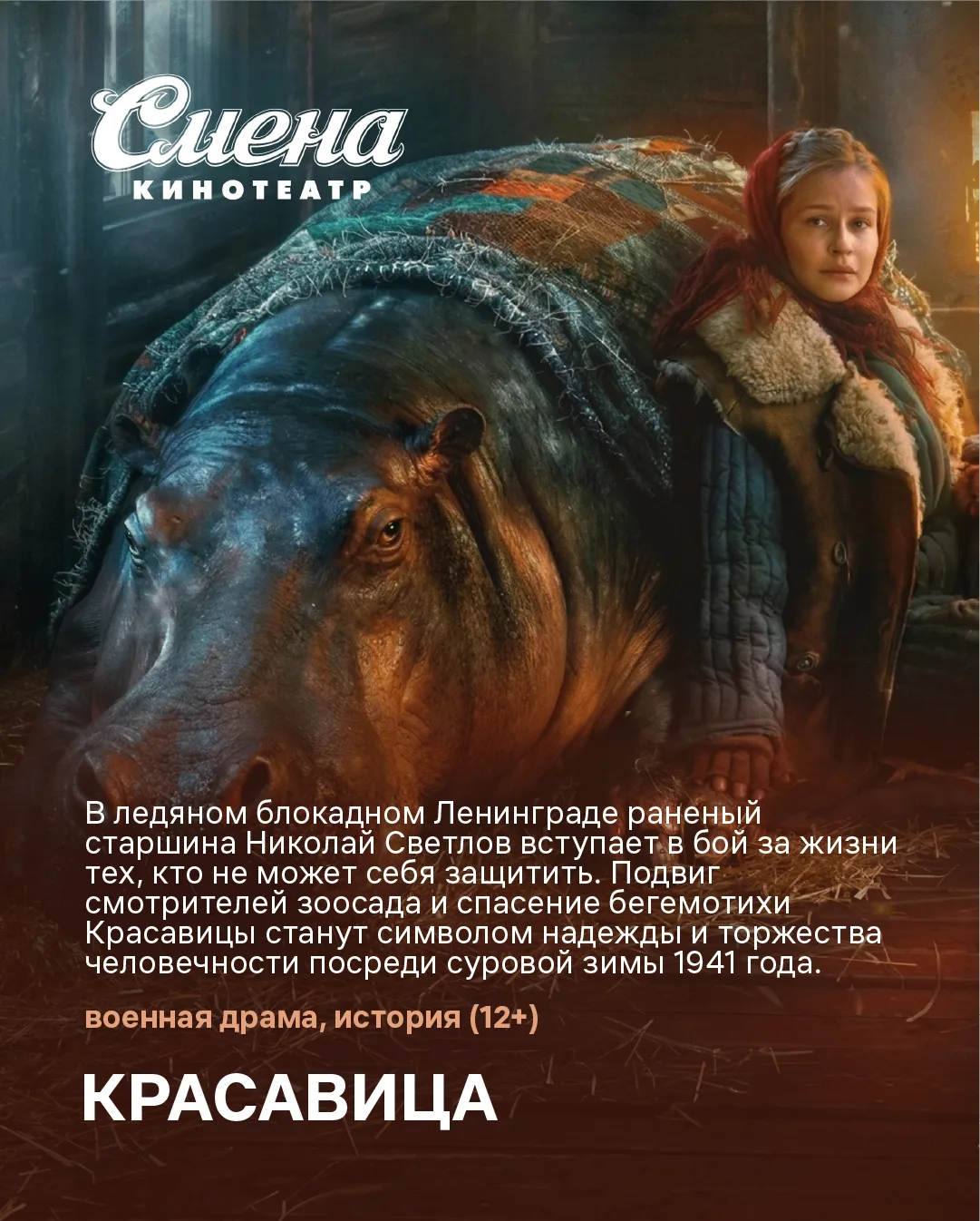 🔸 Красавица: История подвига смотрителей ленинградского зоосада, спасающих бегемотиху Красавицу в суровые дни блокады