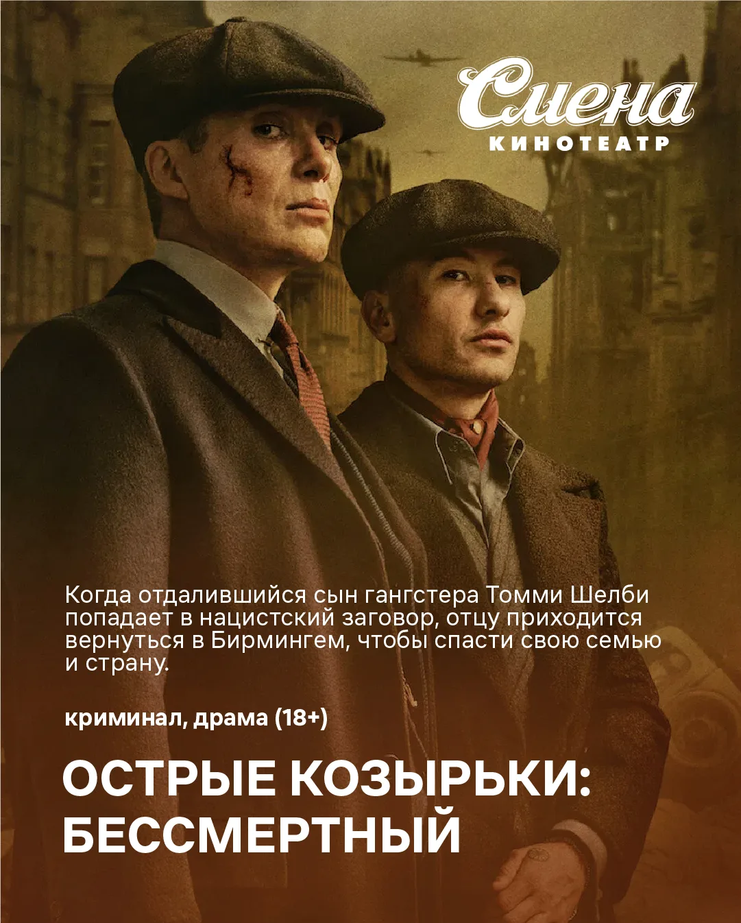 🥃 ОСТРЫЕ КОЗЫРЬКИ: БЕССМЕРТНЫЙ (18+) - Легендарный Томас Шелби возвращается в большой игре. В Бирмингеме назревает новая война за власть, и на этот раз правила диктует тот, кому больше нечего терять.