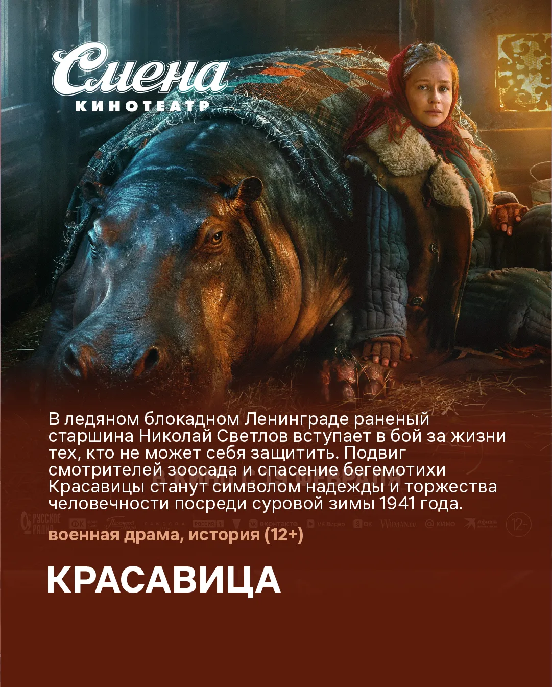 🎟 Билеты на фильм можно приобрести в кассе или на сайте kinosmena.ru