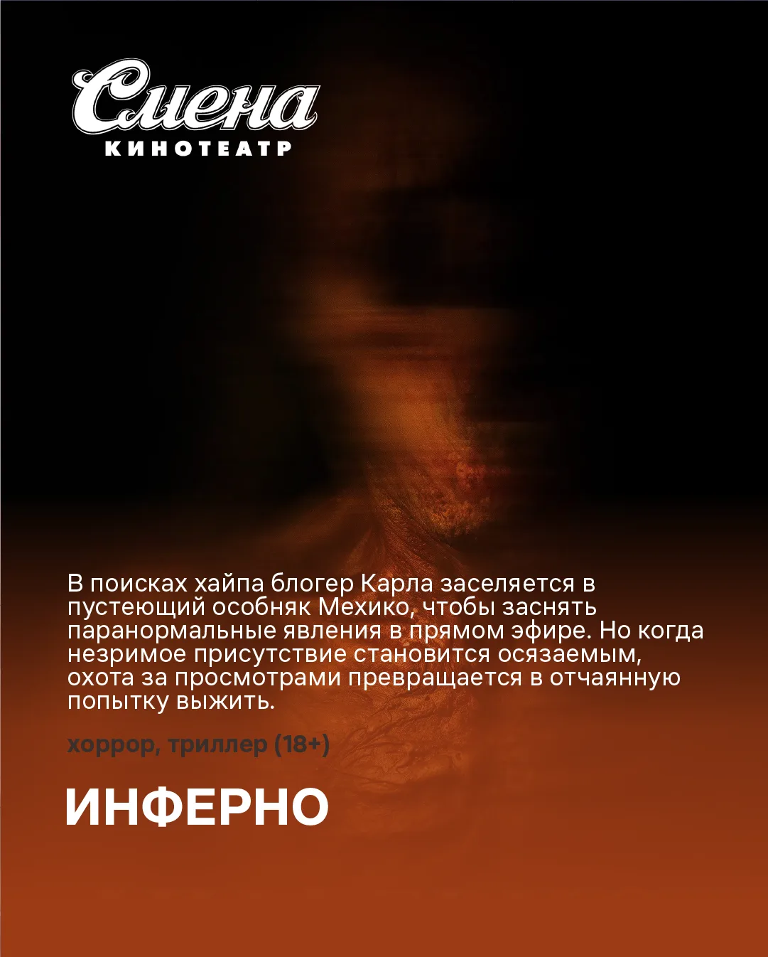 🔸 Инферно: Погоня блогера за хайпом в паранормальном особняке превращается в кровавую битву за выживание в прямом эфире.
