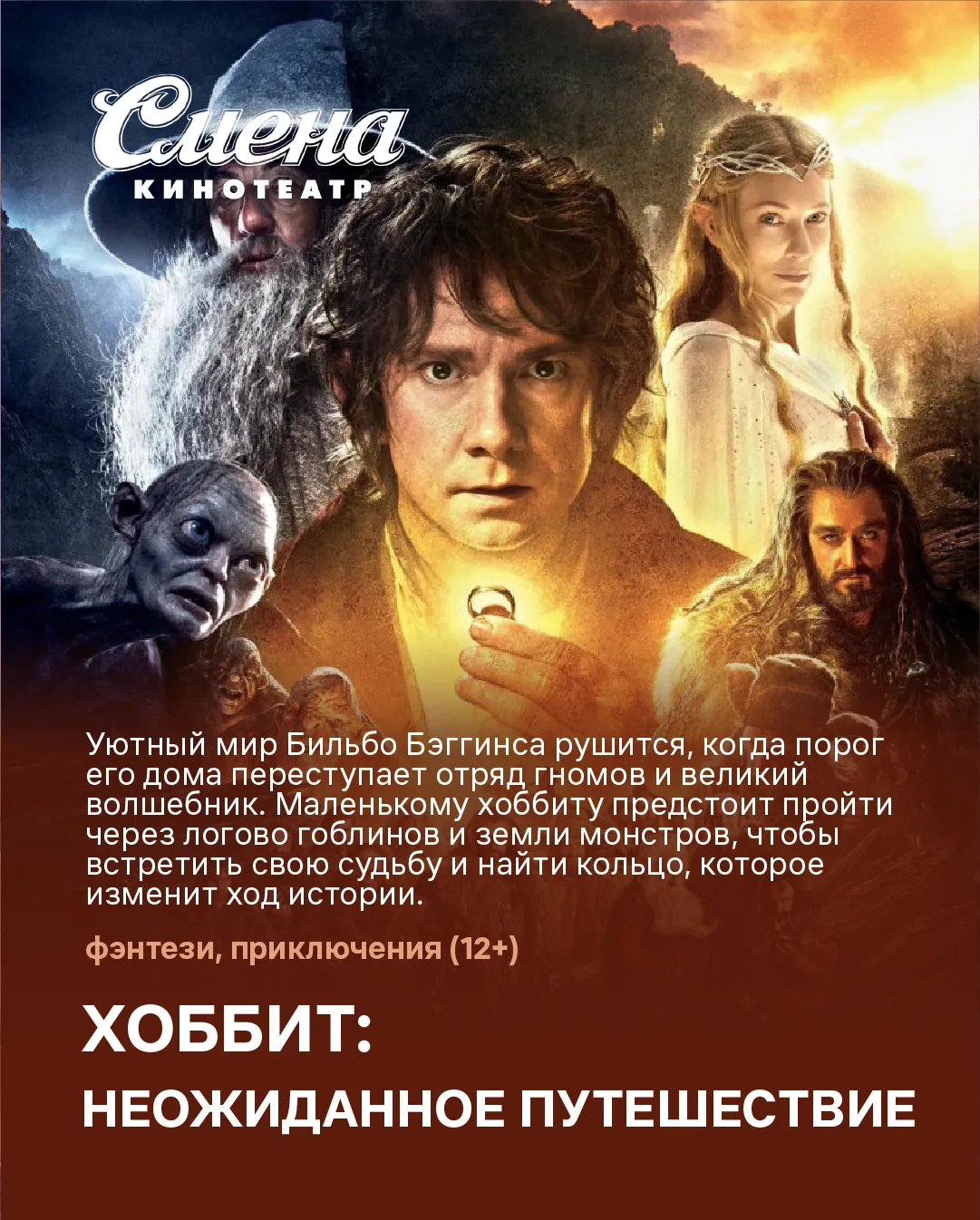 🔸Хоббит: Неожиданное путешествие: Тихая жизнь Бильбо Бэггинса меняется навсегда, когда он отправляется с гномами в эпический поход