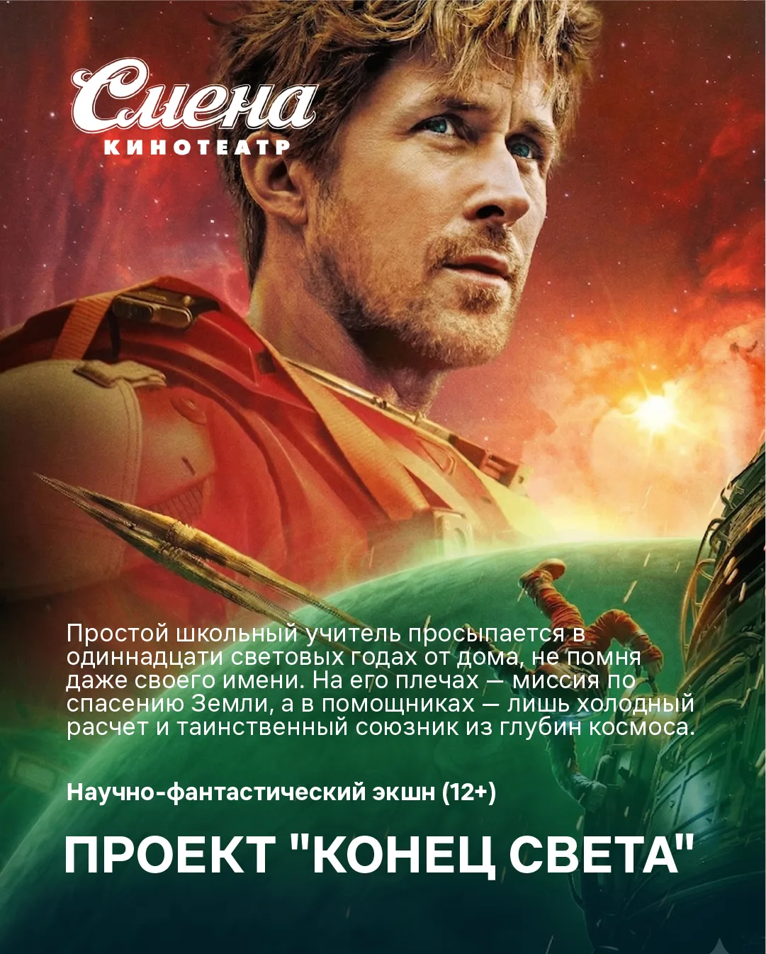 Смотрите в кинотеатрах главный фантастический фильм этой весны - «Проект „Конец света“». Когда Луна - это только начало пути, а цель - спасти Солнце. Будущее уже здесь, а билеты на сайте kinosmena.ru