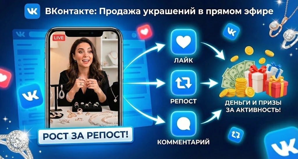 Загляните на наш эфир сегодня во ВКонтакте: новинки украшений, живое общение и эксклюзивные предложения. Ждём вас!
