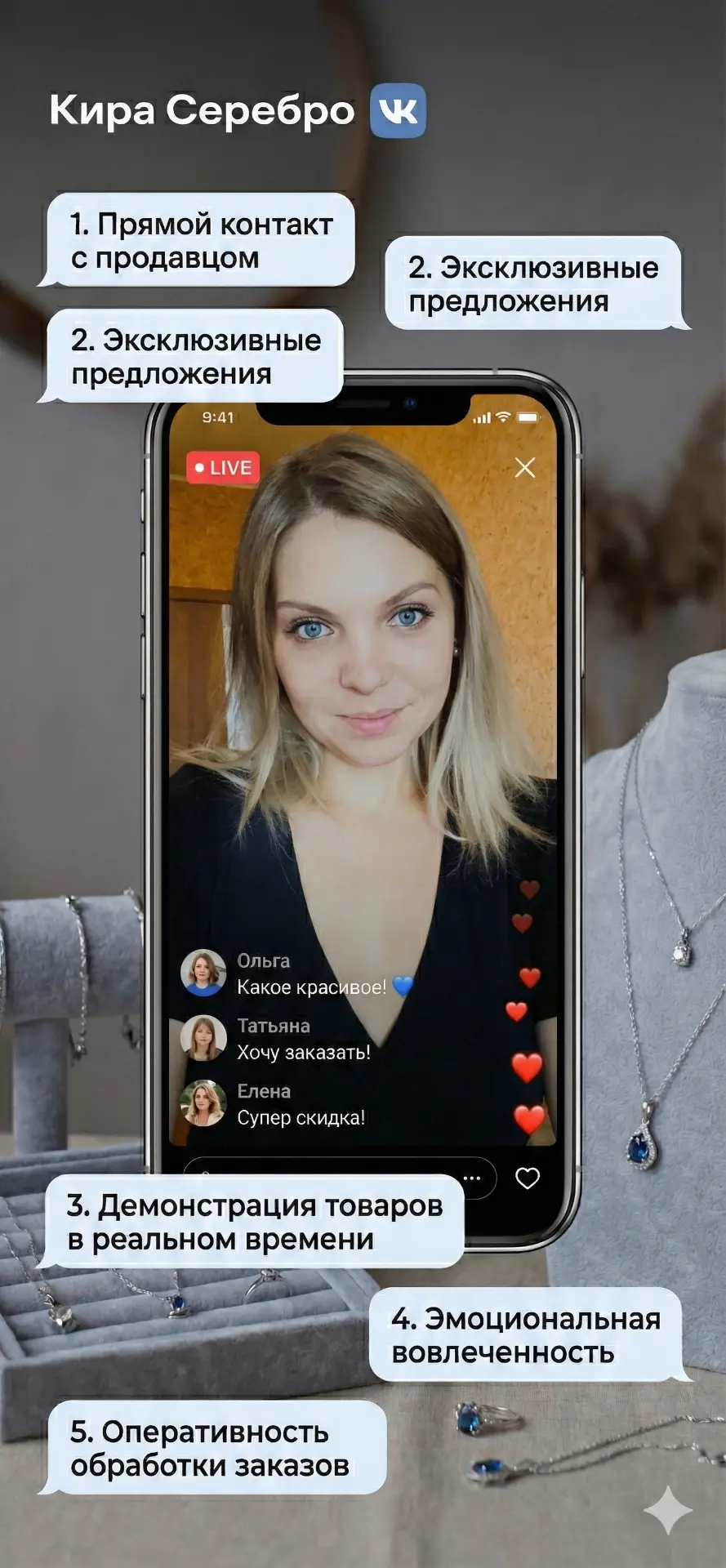 ✨ Почему стоит приходить на наши прямые эфиры от Киры Серебро? ✨Если вы любите украшения так же, как любим их мы — прямые эфиры во ВКонтакте станут вашим новым любимым местом!