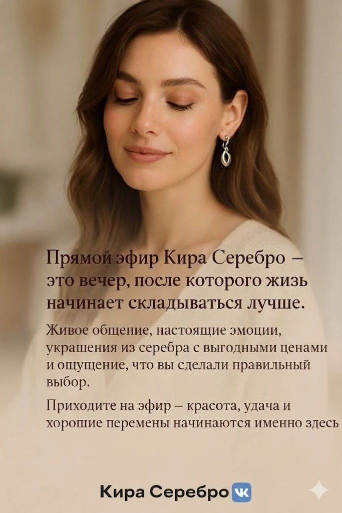 Прямой эфир Кира Серебро — тот самый вечер, после которого жизнь начинает сиять ✨https://vk.com/video-203786418_456260260