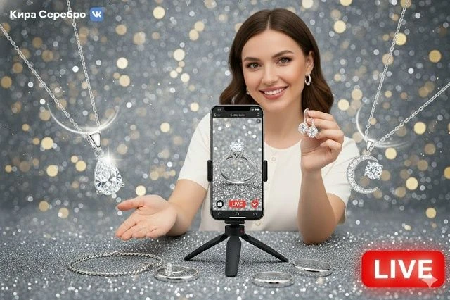 🎥 Присоединяйтесь к нашим прямым эфирам и погружайтесь в мир украшений, где каждый обязательно найдёт своё идеальное серебро.