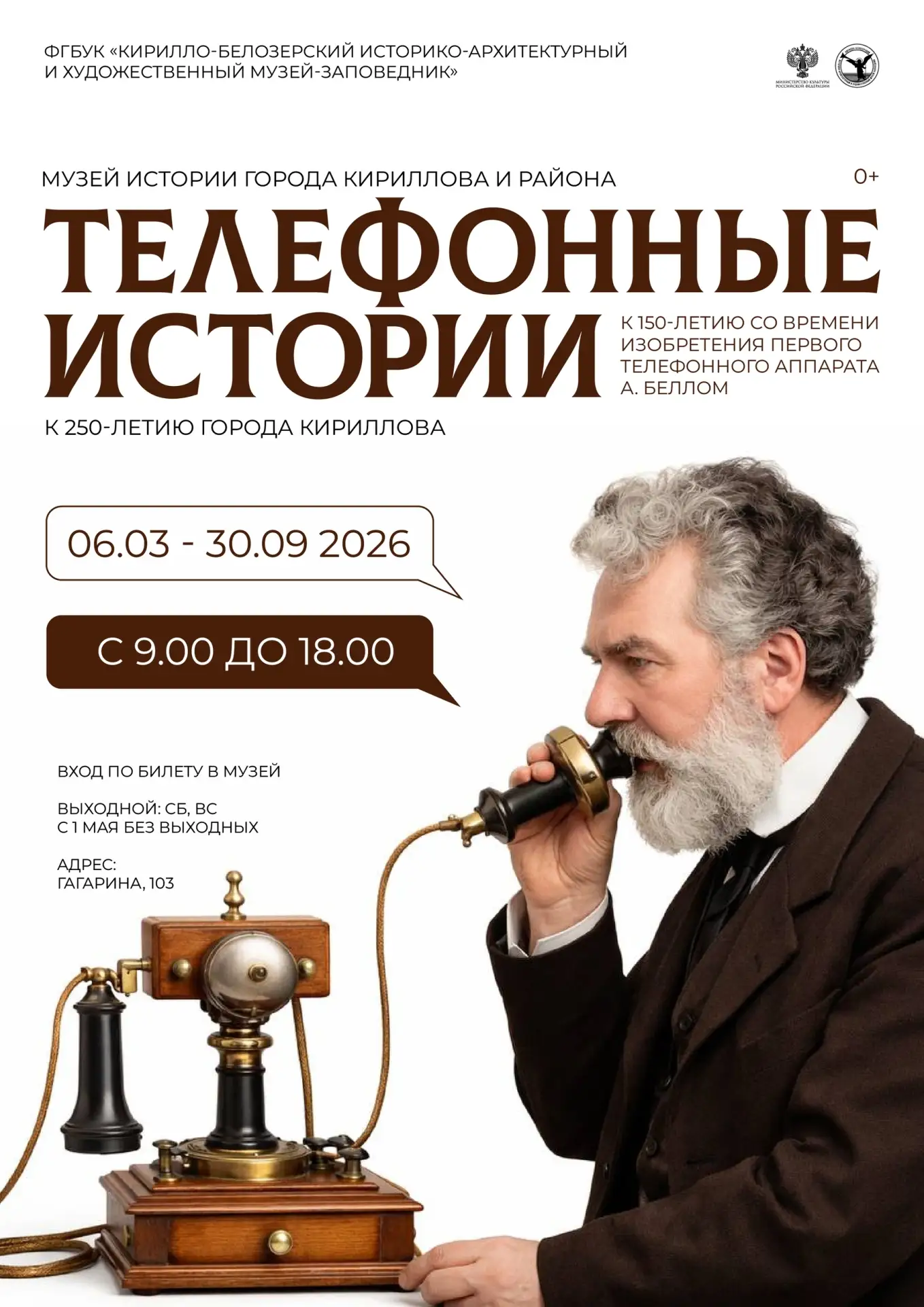 В пятницу, 6 марта, в 15:00, в филиале Кирилло-Белозерского музея-заповедника — Музее истории города Кириллова и района — состоится официальное открытие выставки «Телефонные истории». Проект приурочен к празднованию 250-летия Кириллова и расскажет о телефонизации района.