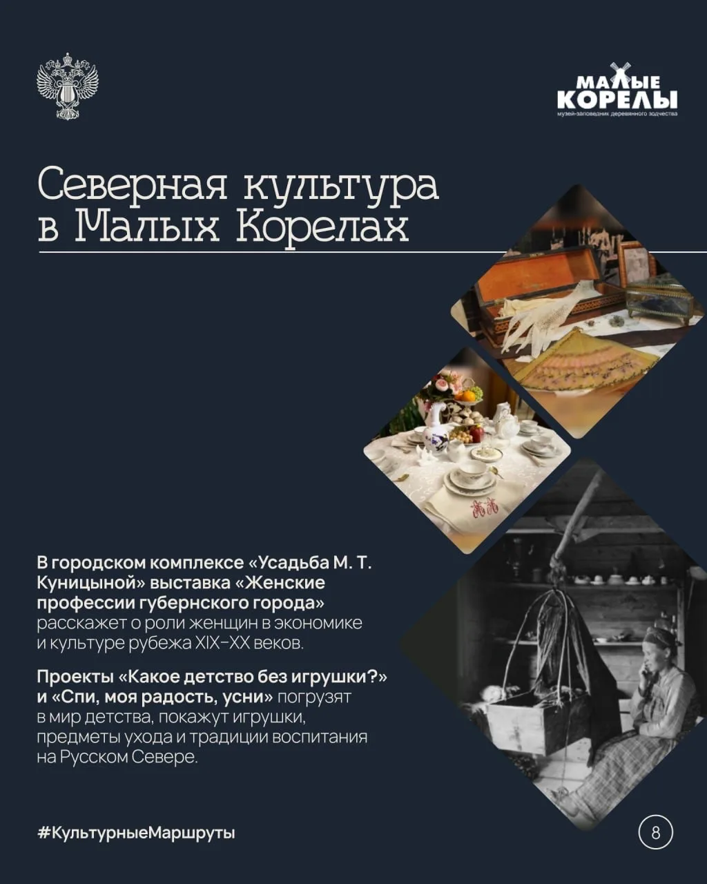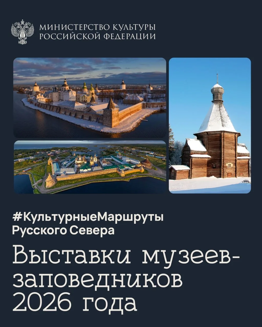 От островных ансамблей Карелии до монастырских крепостей Вологодчины и деревянных поселений Архангельского края. Выставочные проекты федеральных музеев в 2026 г. позволят увидеть Север как живое культурное пространство: с его архитектурой, ремеслами, художественными традициями и судьбами людей, формировавших регион на протяжении веков.