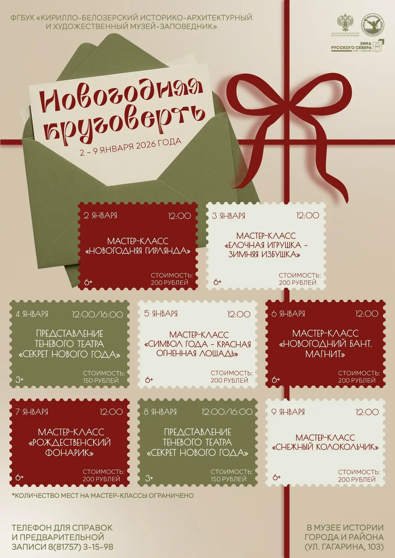 Дорогие друзья! Кирилло-Белозерский музей-заповедник приглашает вас на новогодние мероприятия в выставочный комплекс «Народный дом» (ул. Преображенского, 3).