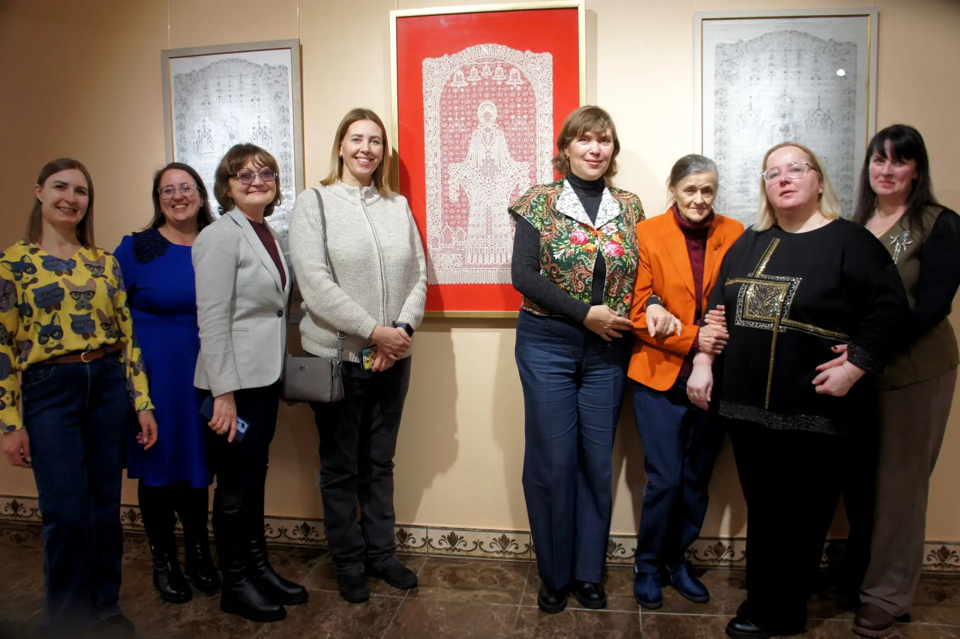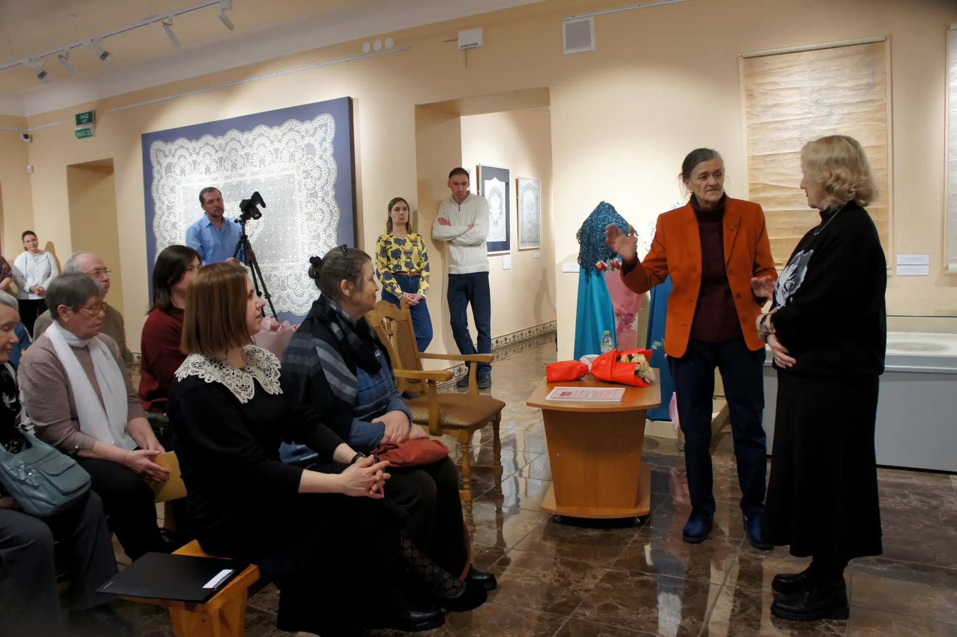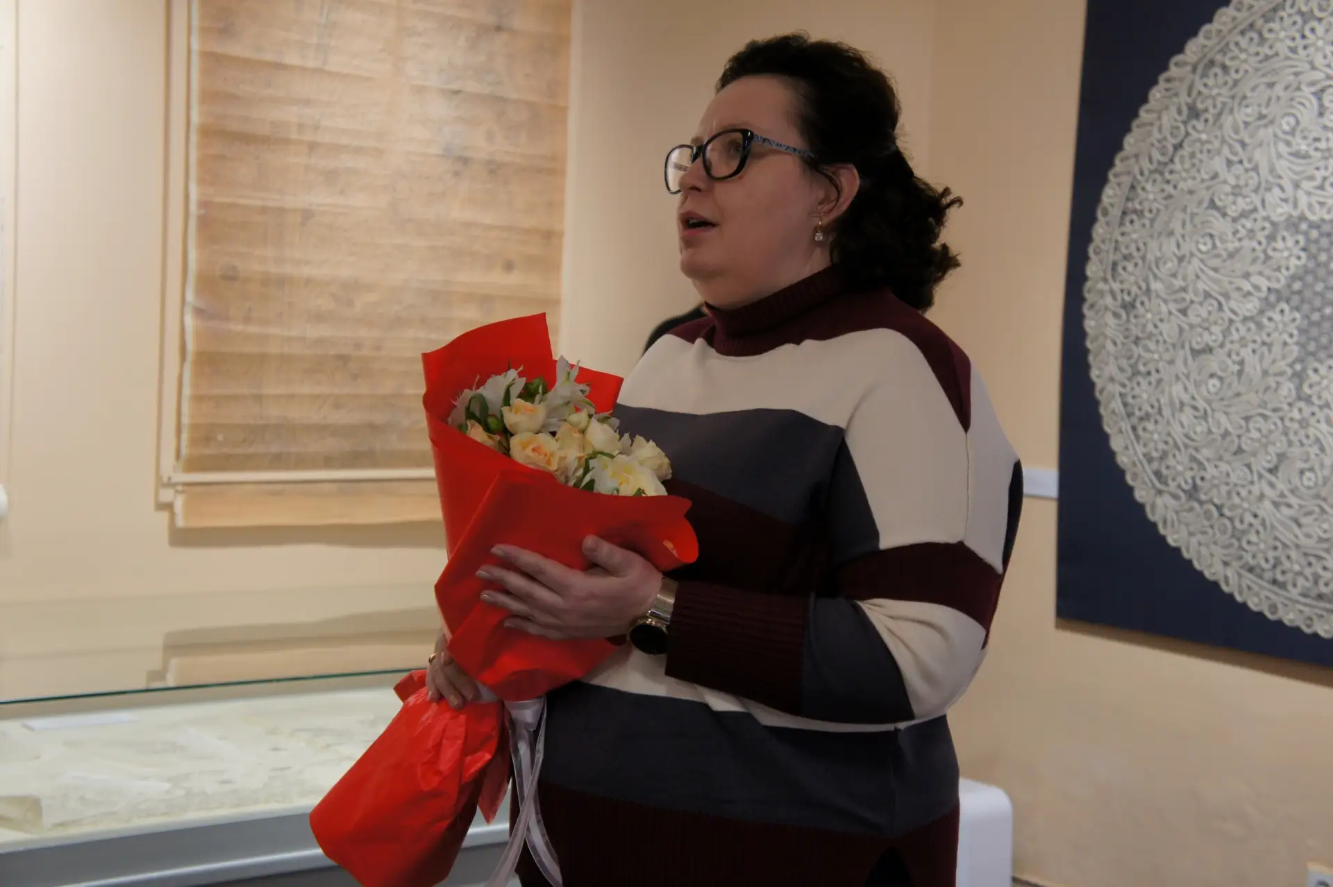 - Сегодня не просто открытие выставки, сегодня день рождения человека-легенды — Галины Никитичны Мамровской. Вы — ребенок послевоенный, ровесница моей мамы, я прекрасно знаю, что легло на плечи вашего поколения, – обращалась Юлия Вячеславовна к юбилярше. – Благодаря той истории, которая стоит за названием «Вологодское кружево», кружевное объединение «Снежинка», сегодня мы знаем имена тех, кто создавал главный культурный код Вологодчины. Тех, кто сформировал наше представление о прекрасном, показал, что вологодское кружево может быть равноценно великим произведениям живописи, графики, скульптуры…
