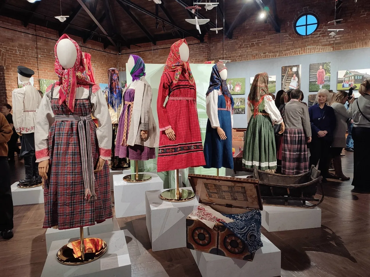 Кроме фоторабот на выставке представлены уникальные предметы народного творчества, подлинники и реплики традиционных костюмов Вологодской области, отражающие богатую культуру и традиции нашего региона.