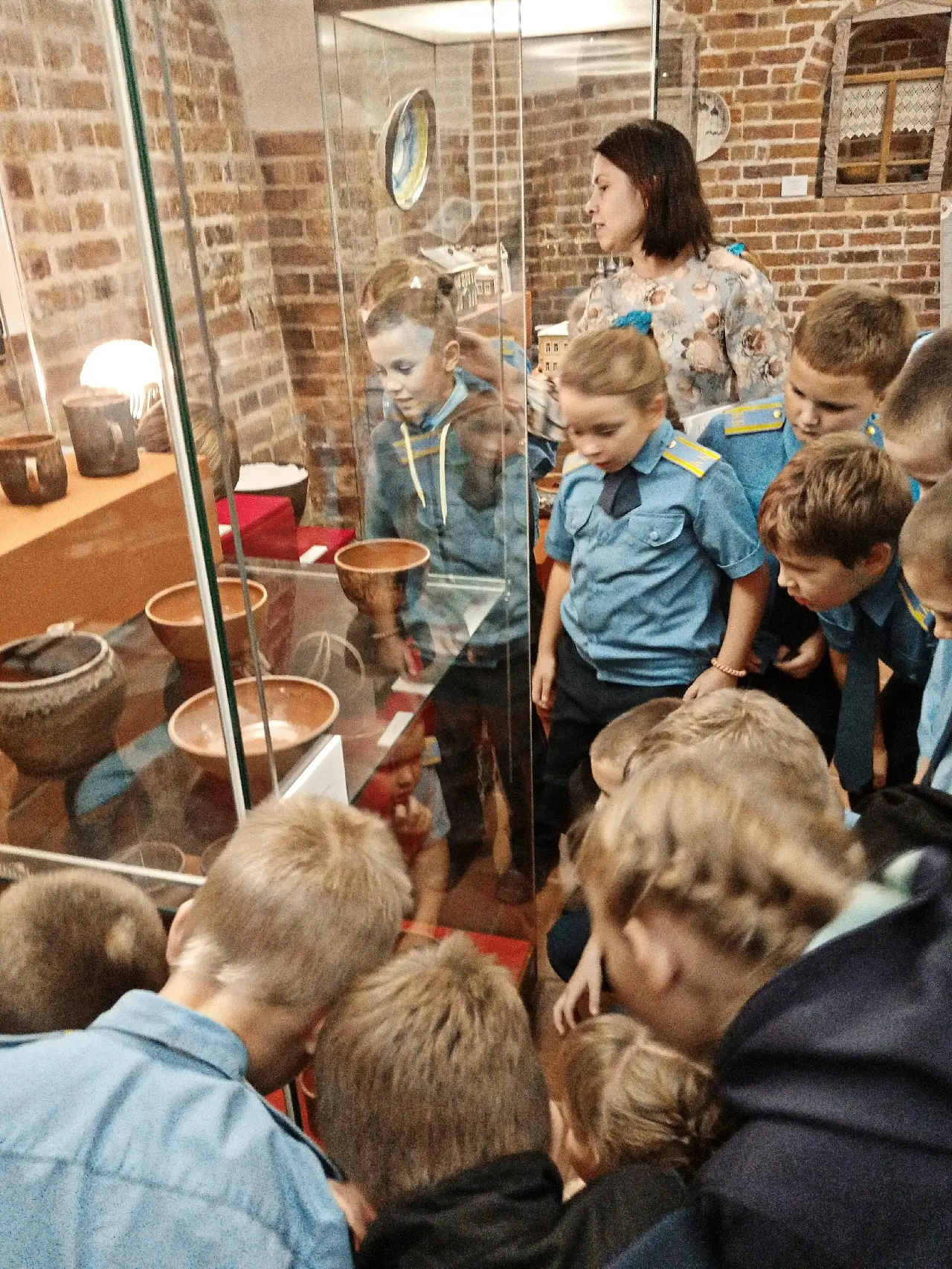 Второй кадетский класс под руководством Веры Николаевны Шороховой за последние две недели занимает лидирующие позиции среди детской аудитории музея: 16 октября ученики посетили экскурсию «Созвучие глины» и познакомились с разными видами техник гончарного искусства: кракле, сграффито, нерияги, нерикоми. С предметами крестьянского быта: крынка, рыльник, опарница.
