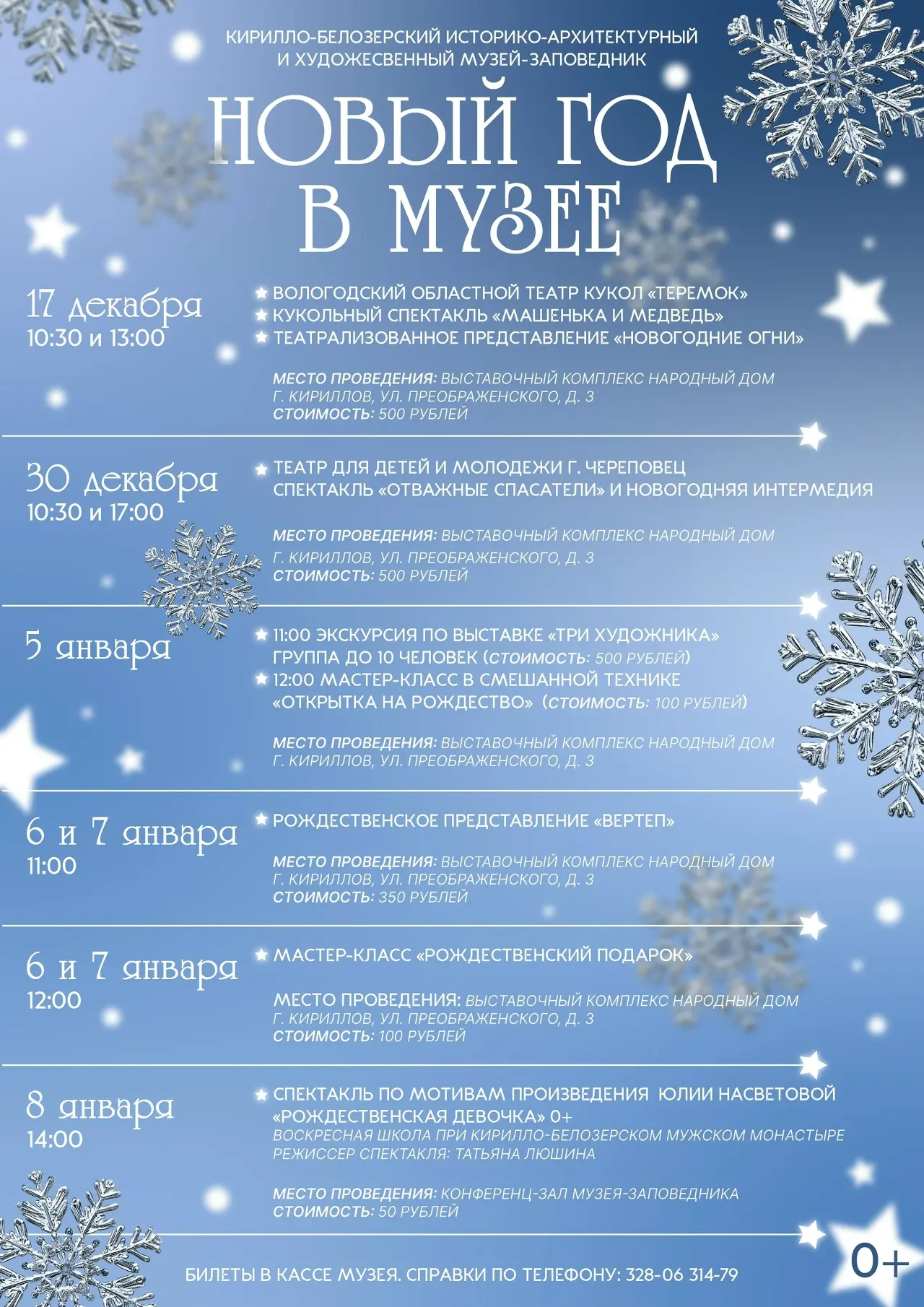 Дорогие друзья! Кирилло-Белозерский музей-заповедник знакомит вас с программой новогодних и рождественских спектаклей и театрализованных представлений!