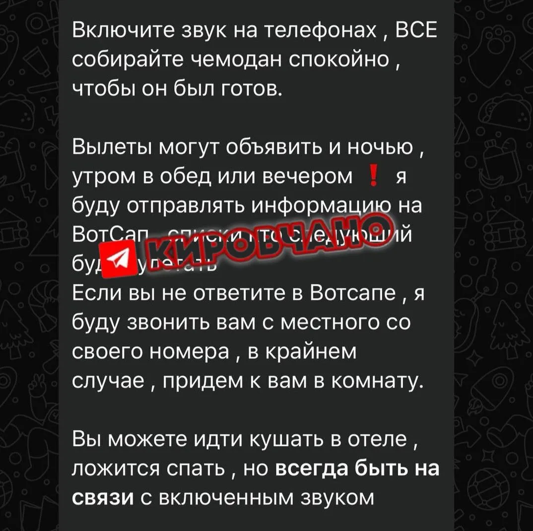 Кировчане, о которых мы писали ранее, тоже надеются вылететь в ближайшее время. Напомним, они уже третий день ждут своего самолёта. Всё это время они живут в отеле бесплатно и их кормят 3 раза в день, гид живёт с ними. Но хорошим отдыхом под гулы дронов это не назвать, говорят они.