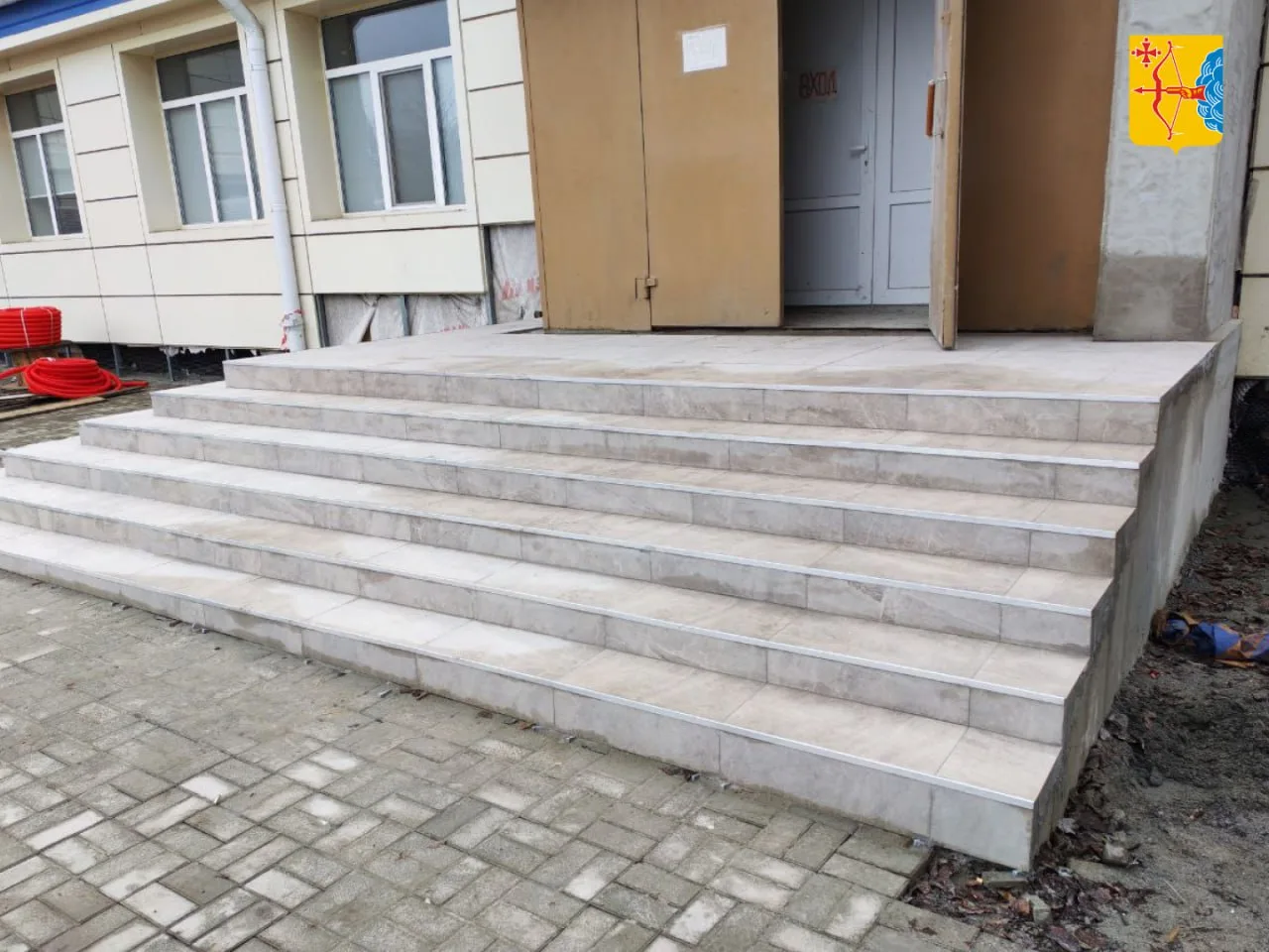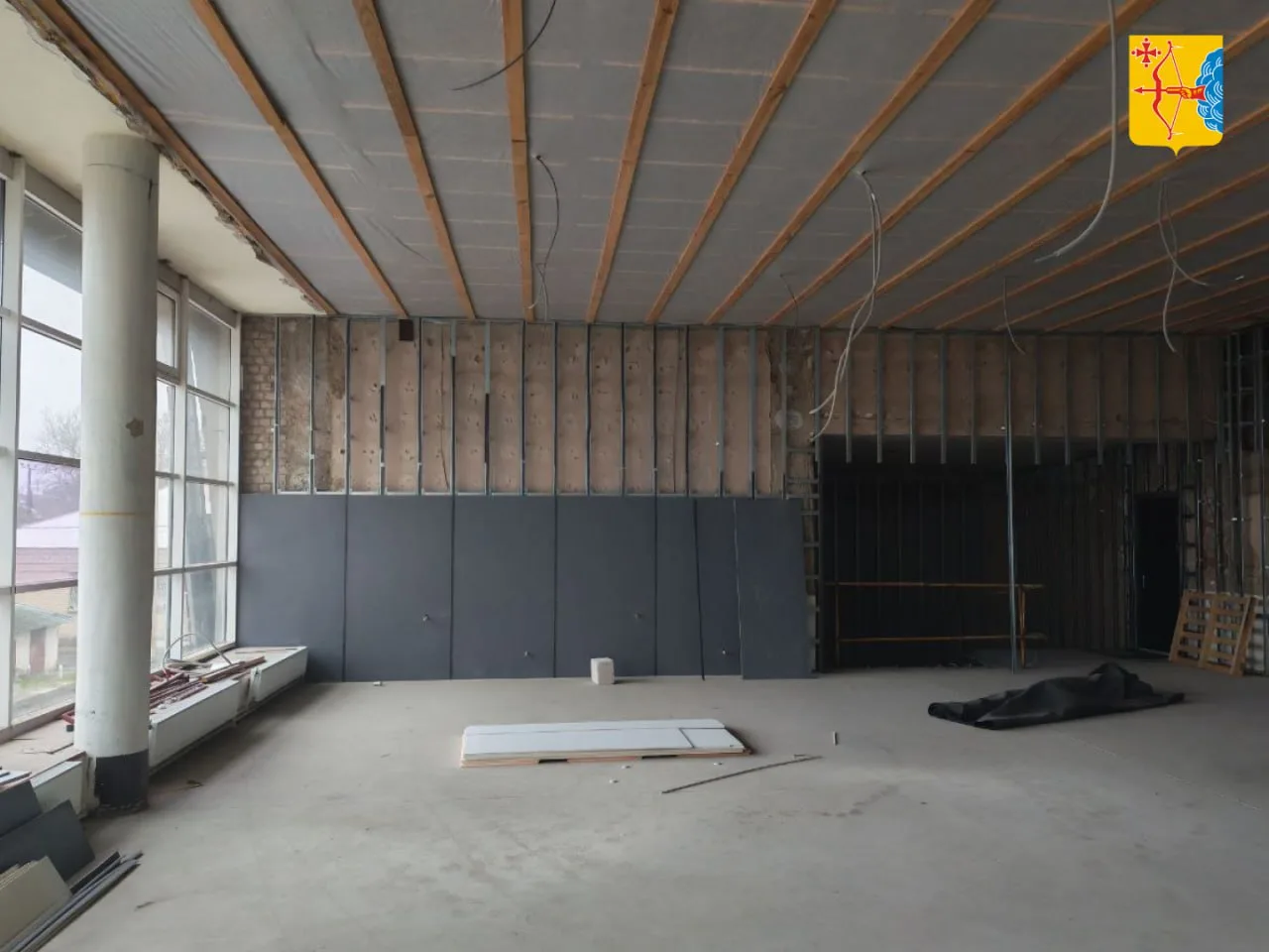 Капитальный ремонт в Центральном ДК округа включает масштабные работы по обновлению всего здания. Замена кровли и фасада выполнены в прошлом году. В 2025 году продолжается облицовка входных групп керамогранитом, создана новая отмостка, смонтирована дренажная система и хозяйственно-бытовая канализация, обустроены новые колодцы. Идет отделка (штукатурка) внутренних помещений. В холле второго этажа сняты старые стеновые панели, далее несущий металлический каркас помещения будет укреплен.
