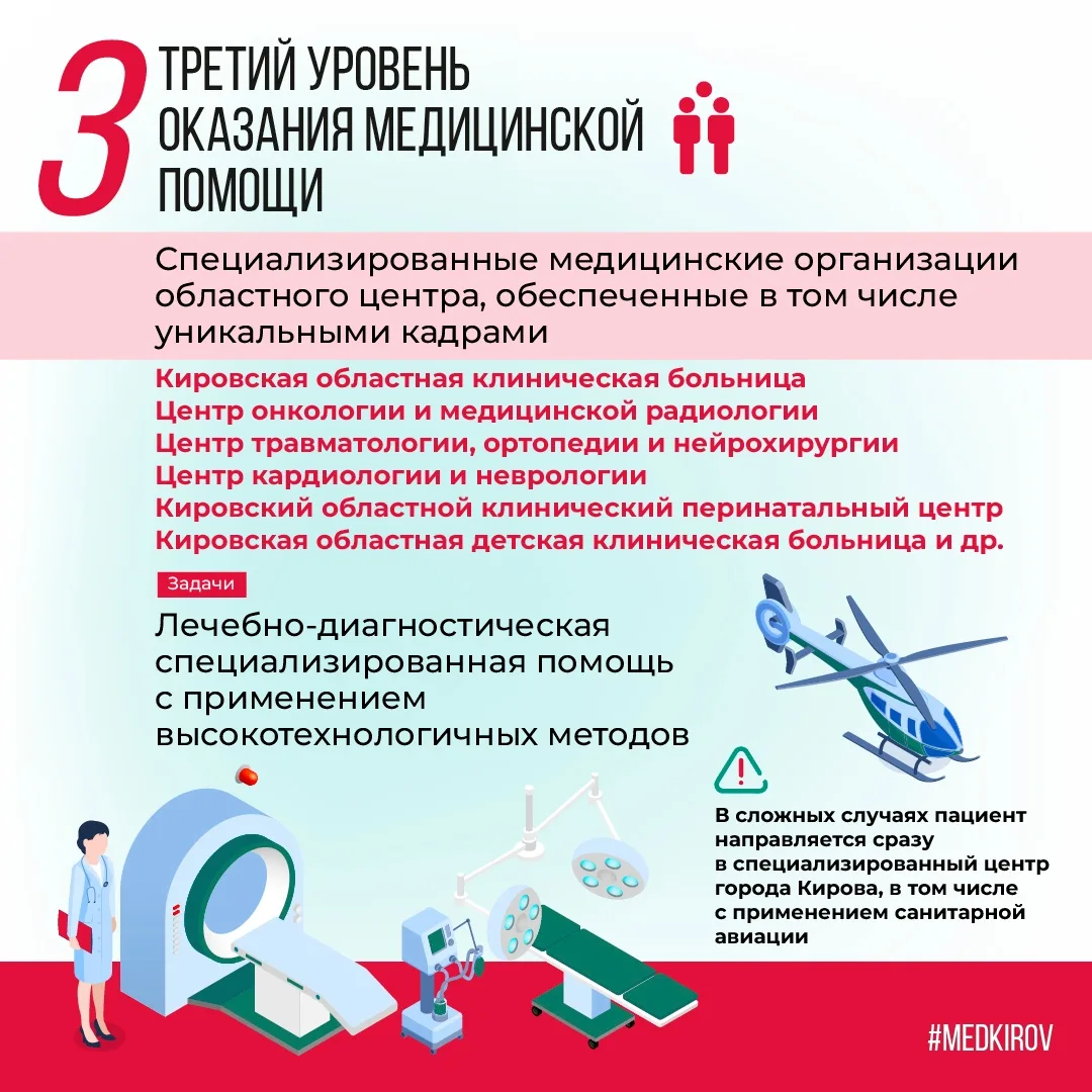 💓 В Кировской области сформирована трехуровневая система оказания медицинской помощи, что позволяет обеспечивать оказание необходимой медицинской помощи, как жителю города, так и жителю отдаленного населенного пункта.
