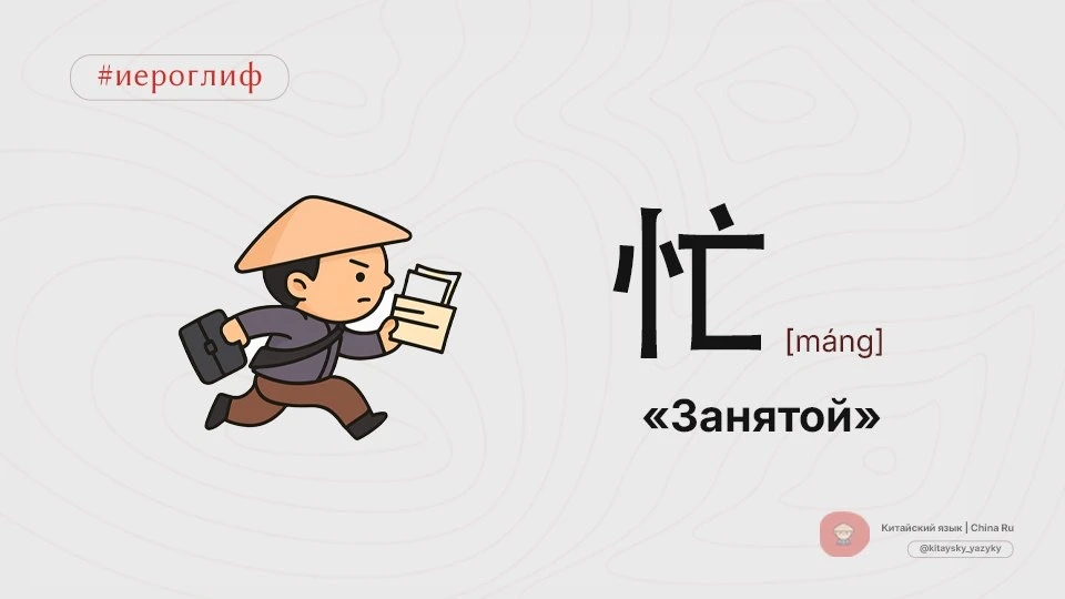 忙 [máng] — Занятой, загруженный (HSK 2)