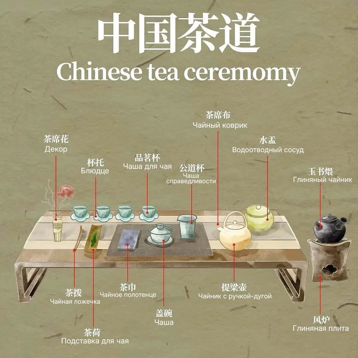 公道杯 (чаша справедливости): сосуд для равномерного распределения настоя, чтобы каждая чашка имела одинаковую крепость.