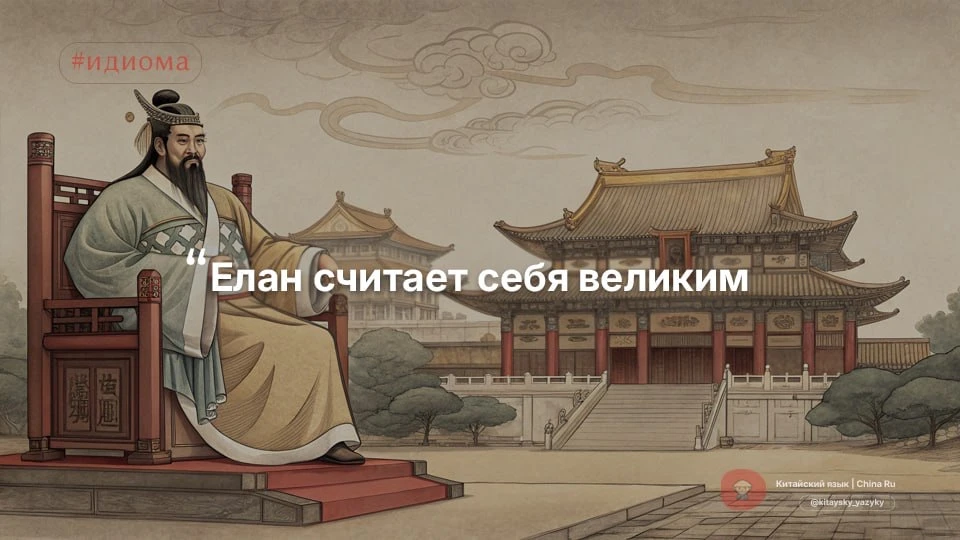 По преданию эпохи Хань о том, как в княжество Елан, находившееся на юге Китая, приехал китайский посол, и тамошний правитель с высокомерием спросил его, не думает ли тот, что Китай больше его собственного княжества.