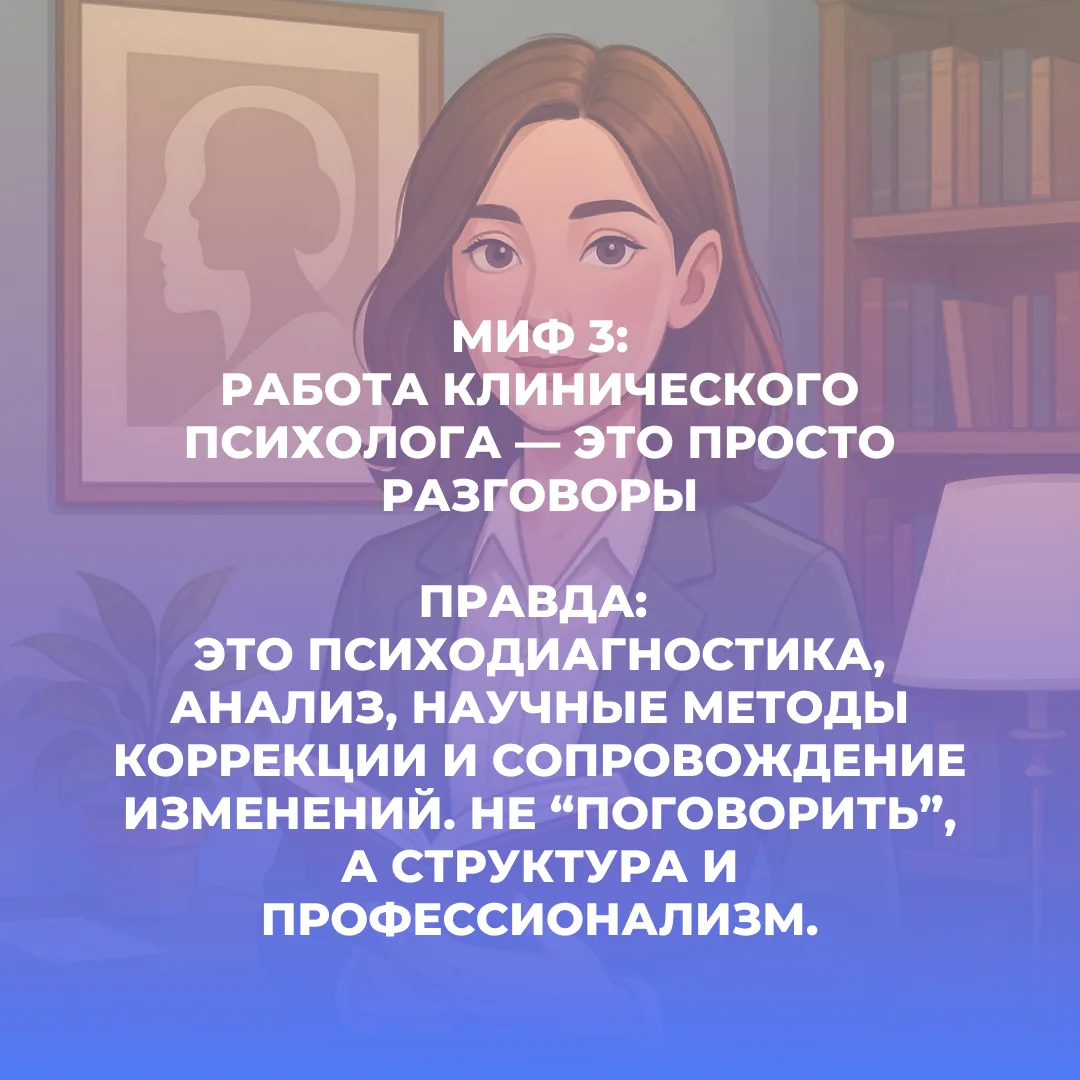 ➡️ МИФ 3. “Работа клинического психолога — это просто разговоры”