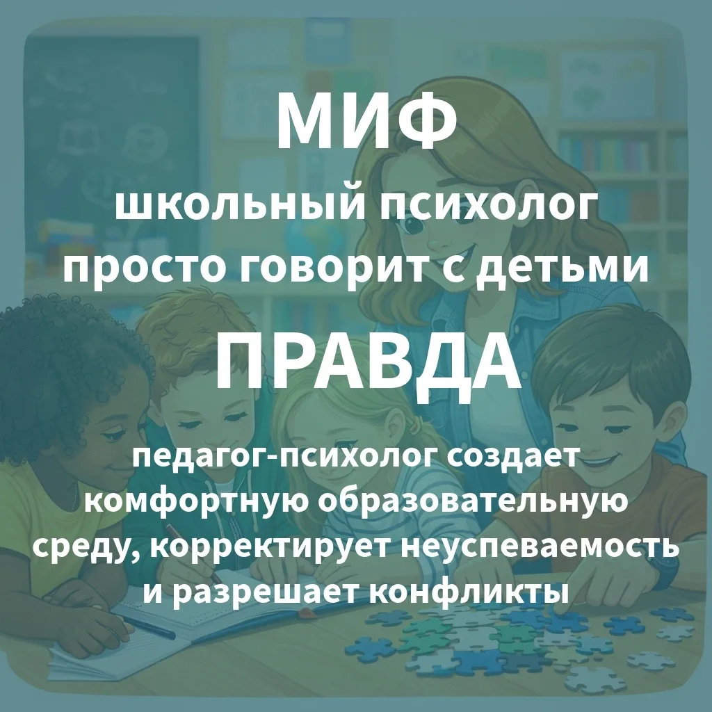 🚫МИФ 1. «Психолог в школе — это человек, который говорит с детьми»