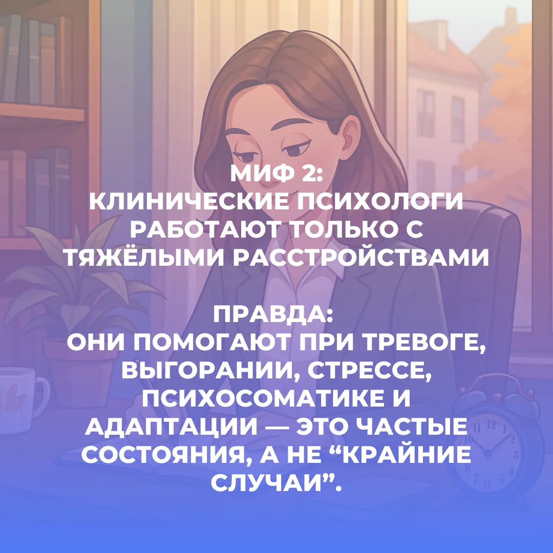 ➡️ МИФ 2. “Клинические психологи работают только с тяжёлыми расстройствами”