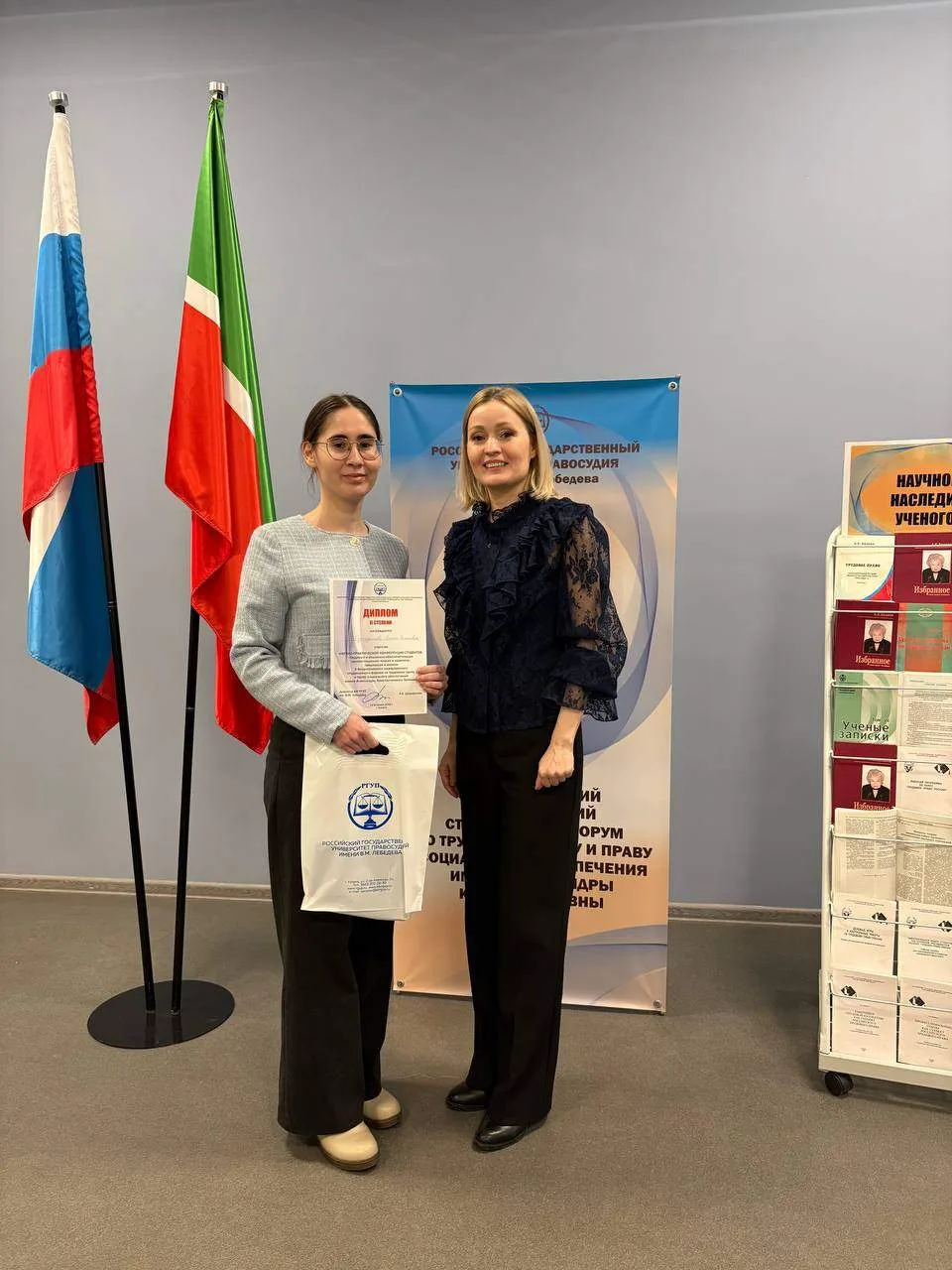 Ляйсан Гизетдинова выступила с исследованием по вопросам использования геолокации и видеонаблюдения в трудовых спорах и была удостоена диплома II степени.