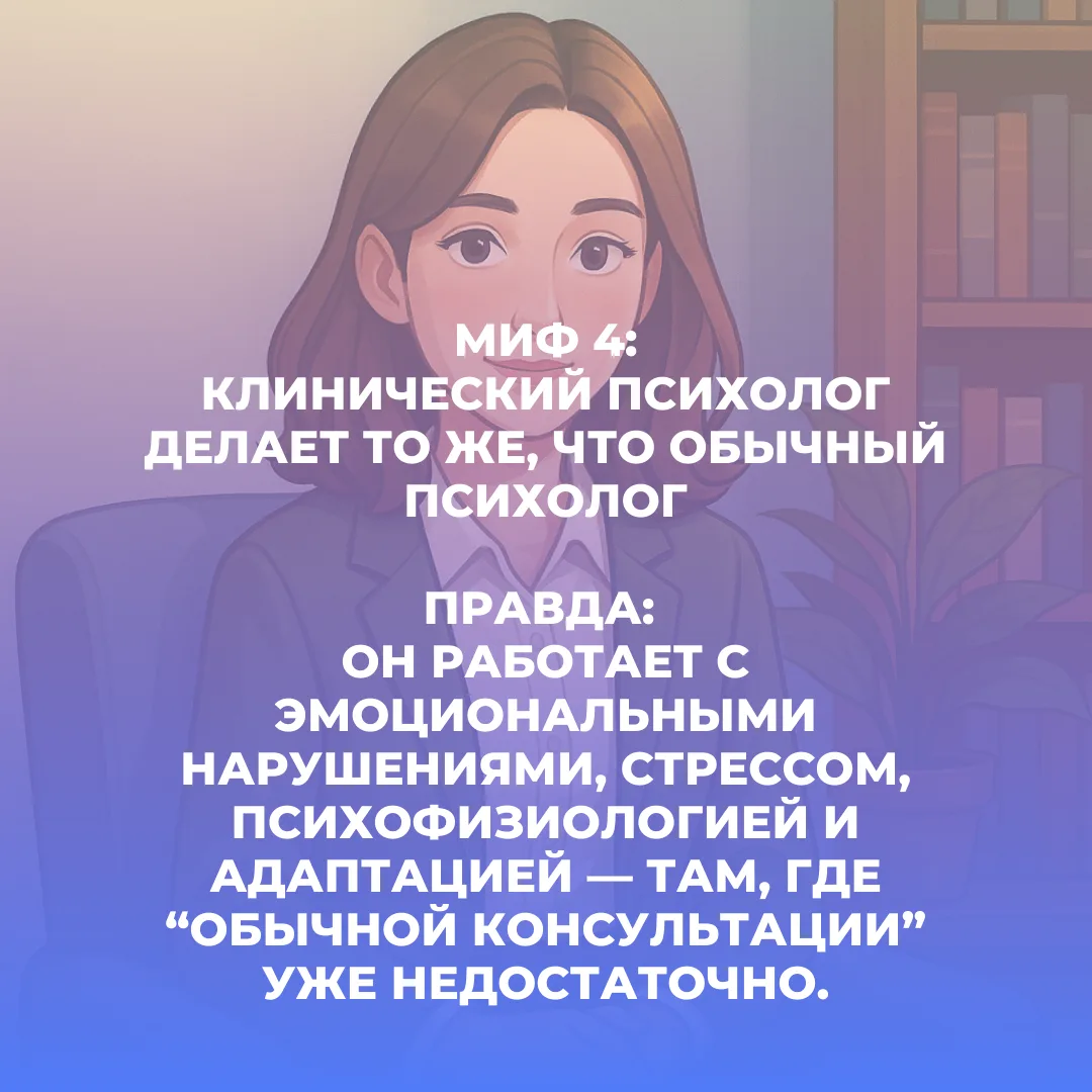 ➡️ МИФ 4. “Клинический психолог делает то же, что и любой психолог-консультант”