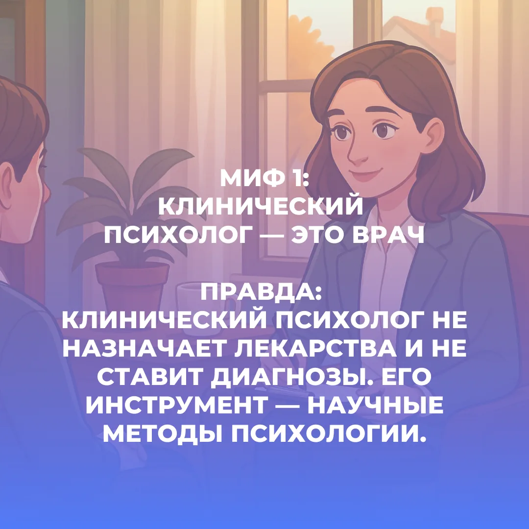 ➡️ МИФ 1. “Клинический психолог — это врач”