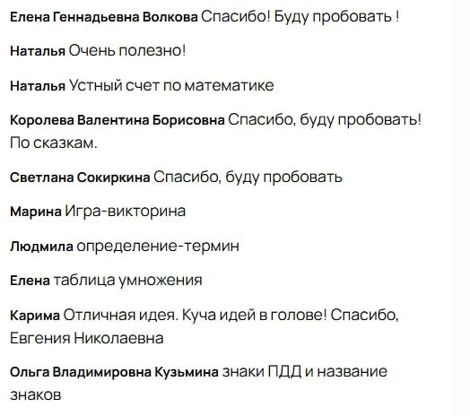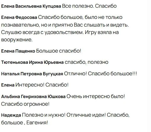«Отличные идеи! Спасибо большое, Евгения!»