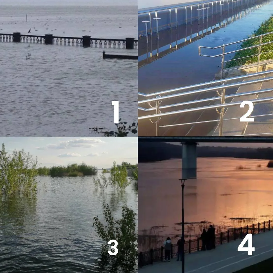 Это четыре набережные разных городов России во время разлива рек. Одна из них — калужская, но какая именно?