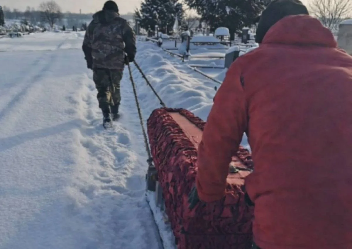 Козельск, хоронят людей на санках, дороги не чищены.