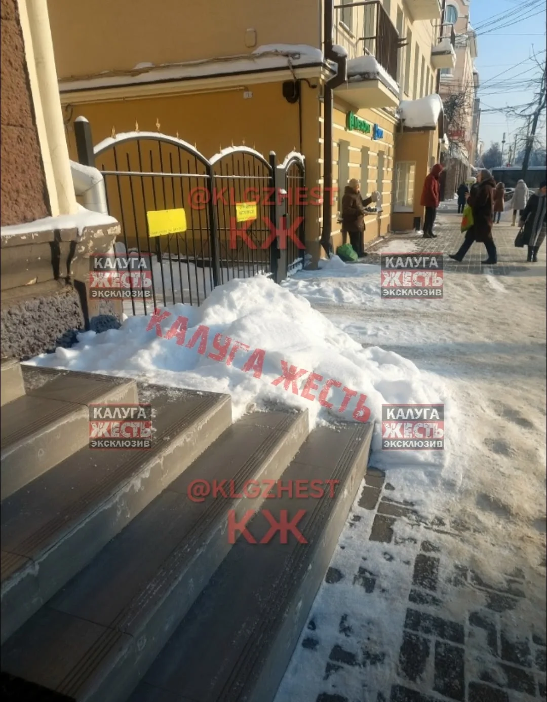 Вот так ходят люди на Кирова « детский мир « с крыши снег скинули а убрать не убрали . Люди идут и падают , просто ужас