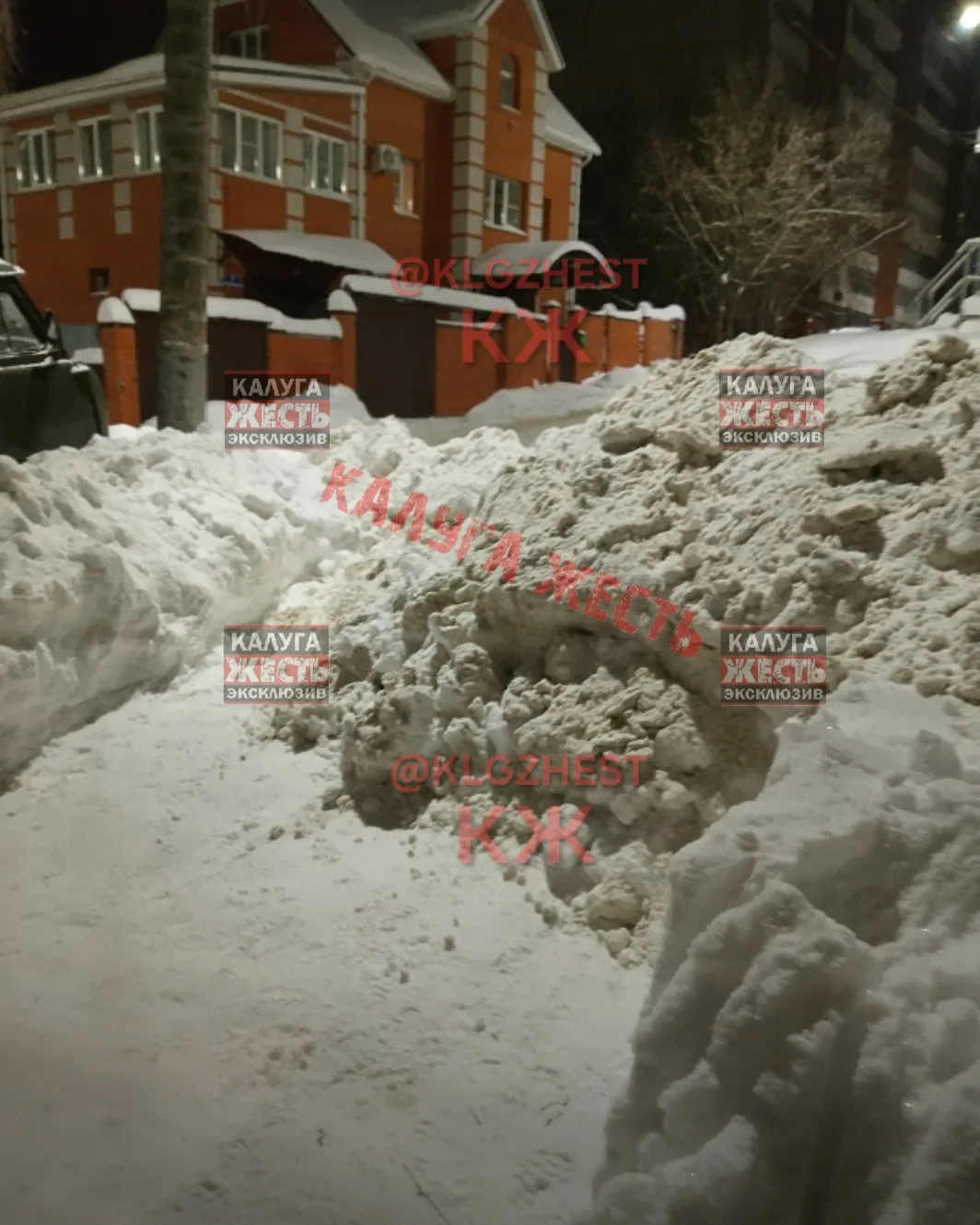 Калуга, Пролетарская 8, с проезжей части весь снег сгребли к нам на заезд, огромные глыбы льда, снега, на жалобы не реагируют, говорят что частный сектор не обслуживаем, вот так относятся к пенсионерам управляющие компании, ничего, мы сами себя обслужим, только свою кучу уберите, лопатами ее не перекидать, прошу администрацию города отреагировать, спасибо за внимание.