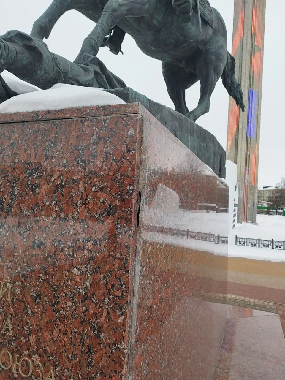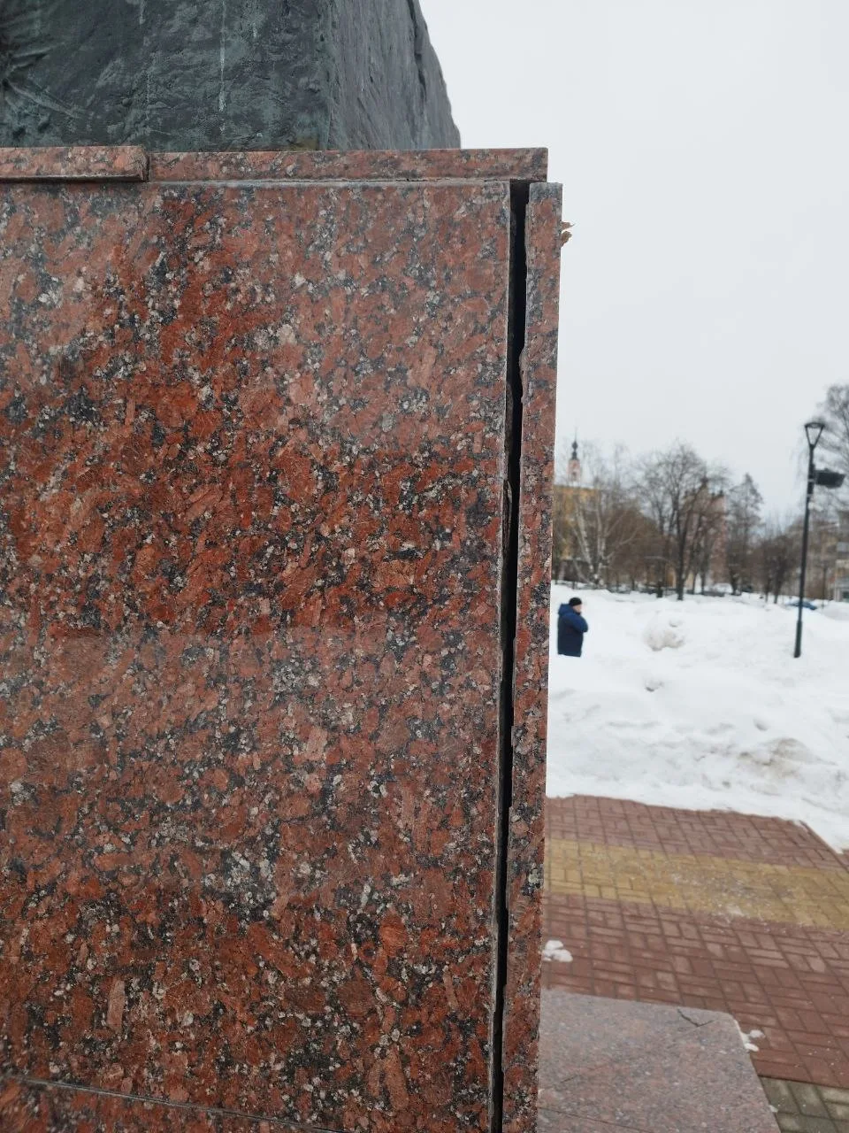 Гранитные плиты отходят от постамента памятника Жукову на площади Победы в Калуге.