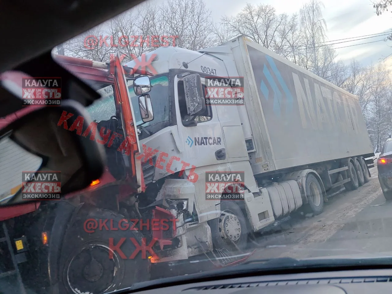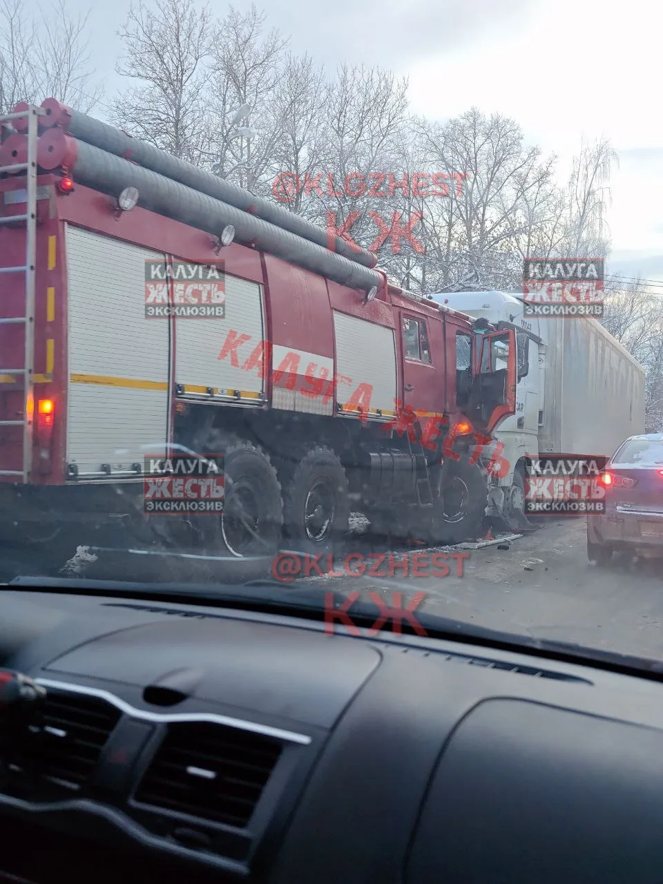 На остановке тайфун лобовое столкновение крупногабаритного и пожарной машиной