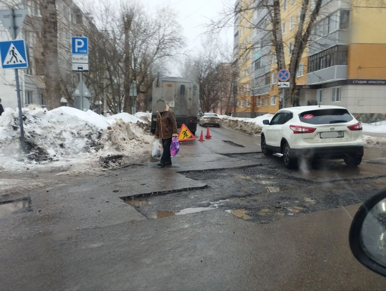 Результат - искусственные ямы и сохраняющееся сужение дороги из‑за зимних сугробов.